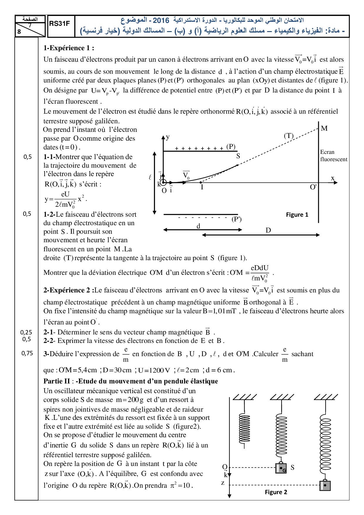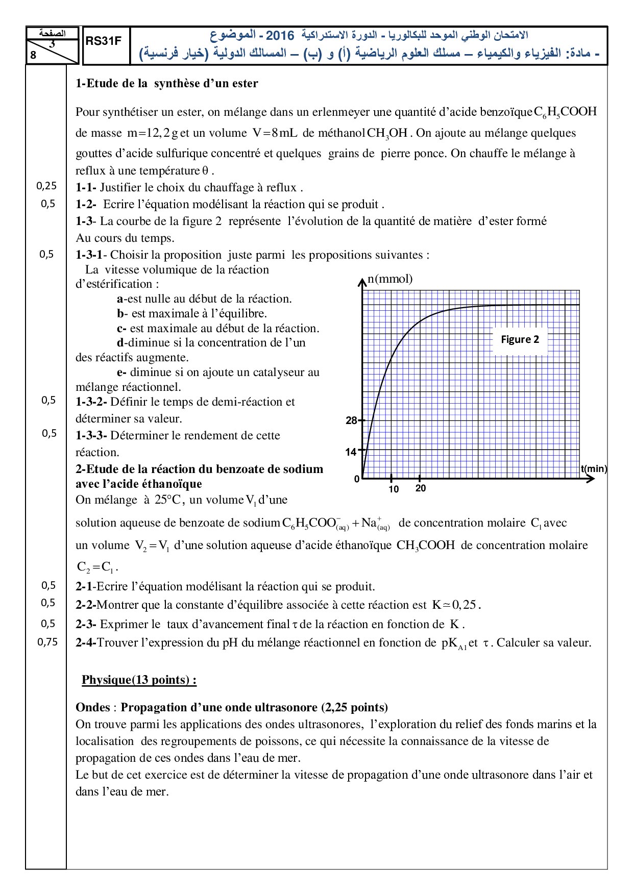 Examen National Physique-Chimie Sciences Maths 2016 Rattrapage - Sujet