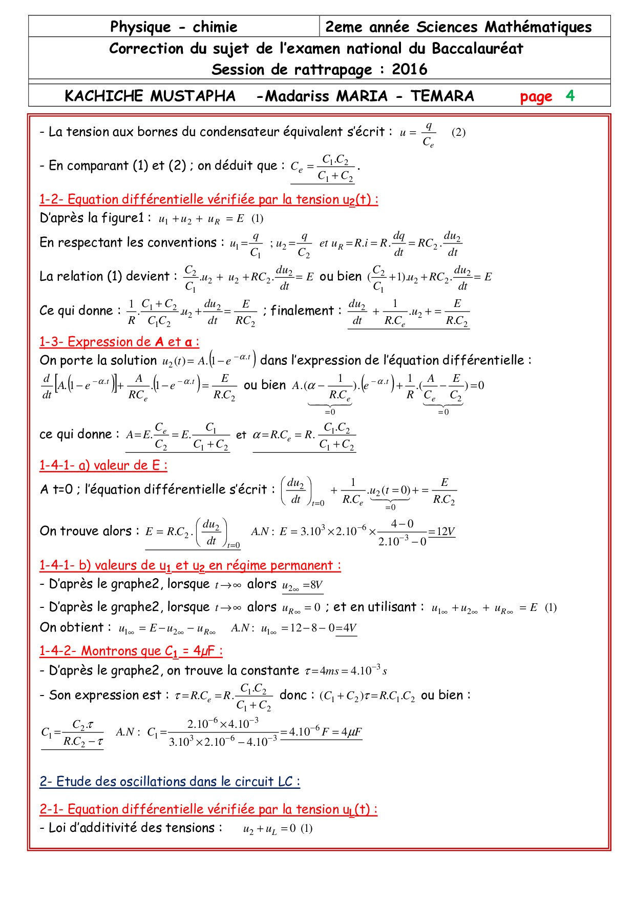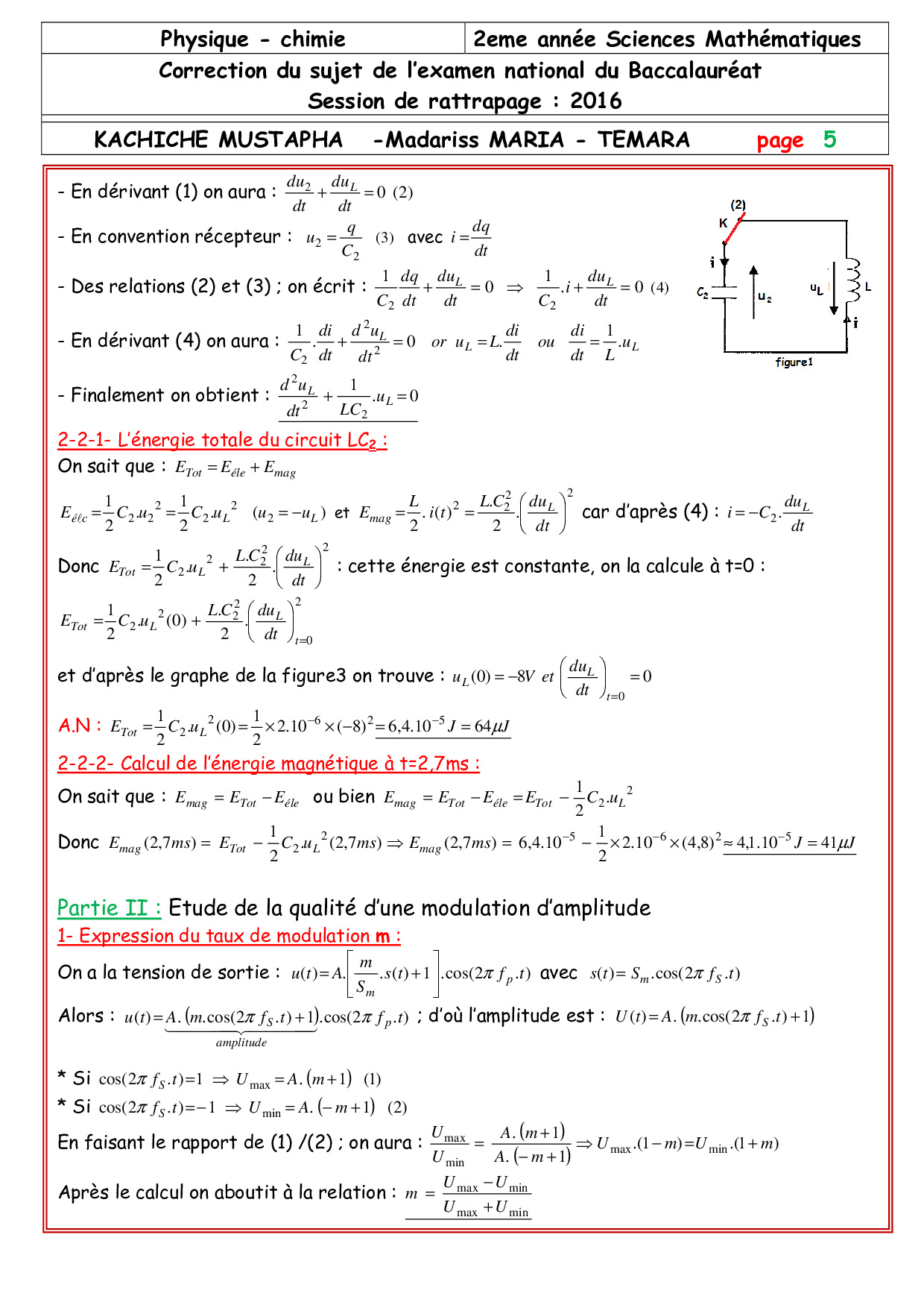 Examen National Physique-Chimie Sciences Maths 2016 Rattrapage - Corrigé
