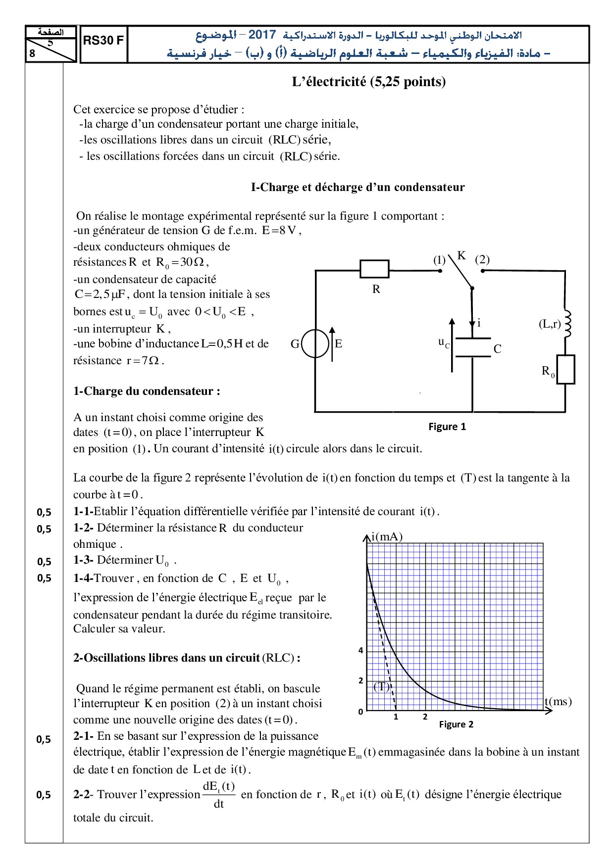 Examen National Physique-Chimie Sciences Maths 2017 Rattrapage - Sujet