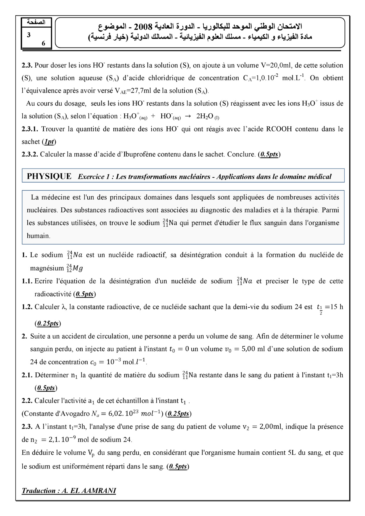 Examen National Physique-Chimie SPC 2008 Normale - Sujet