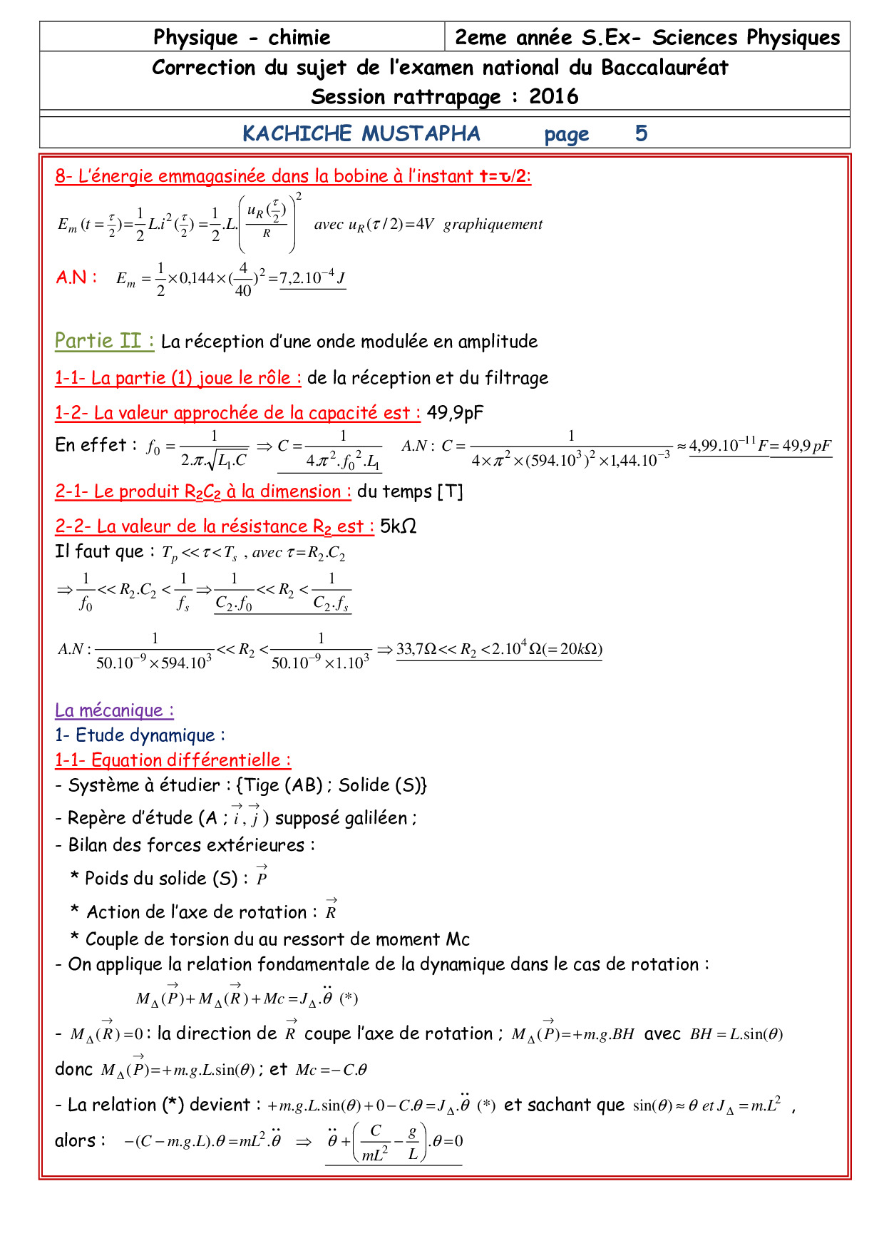 Examen National Physique-Chimie SPC 2016 Rattrapage - Corrigé