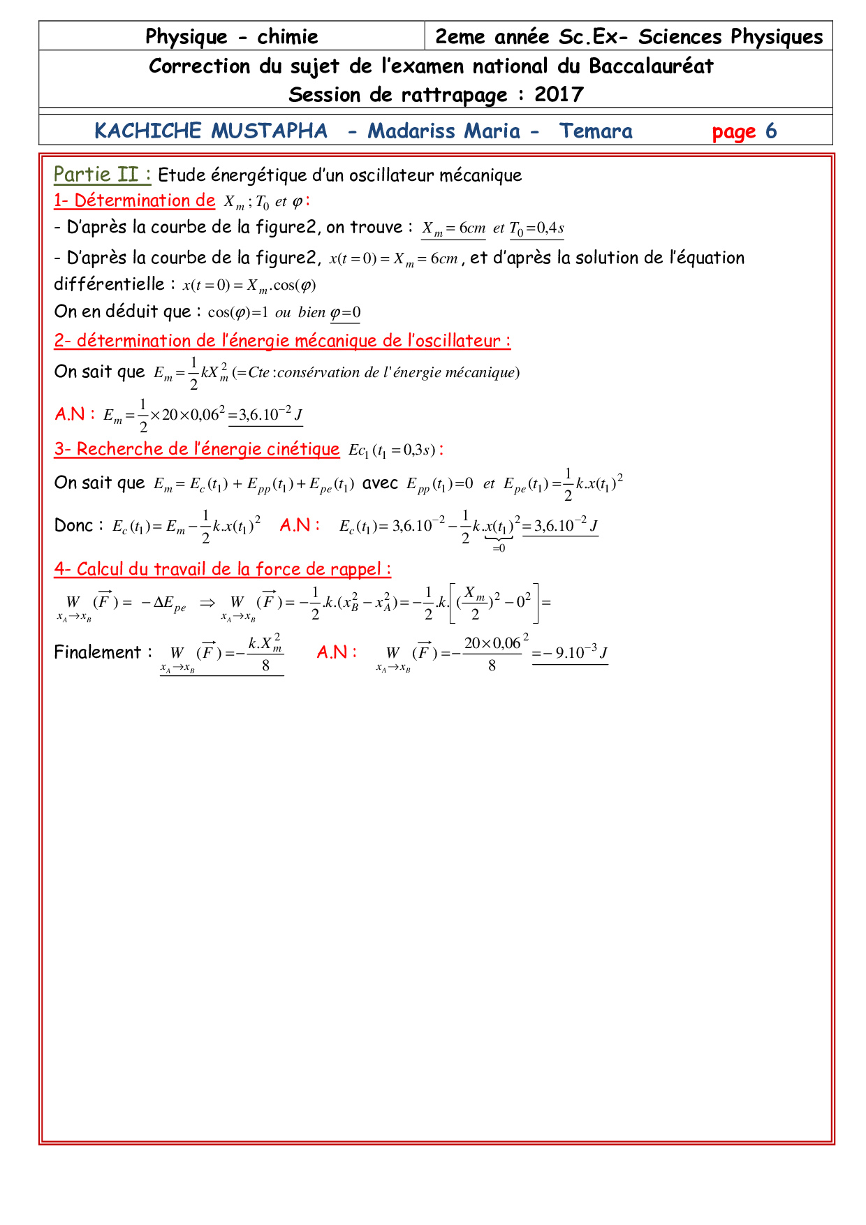 Examen National Physique-Chimie SPC 2017 Rattrapage - Corrigé
