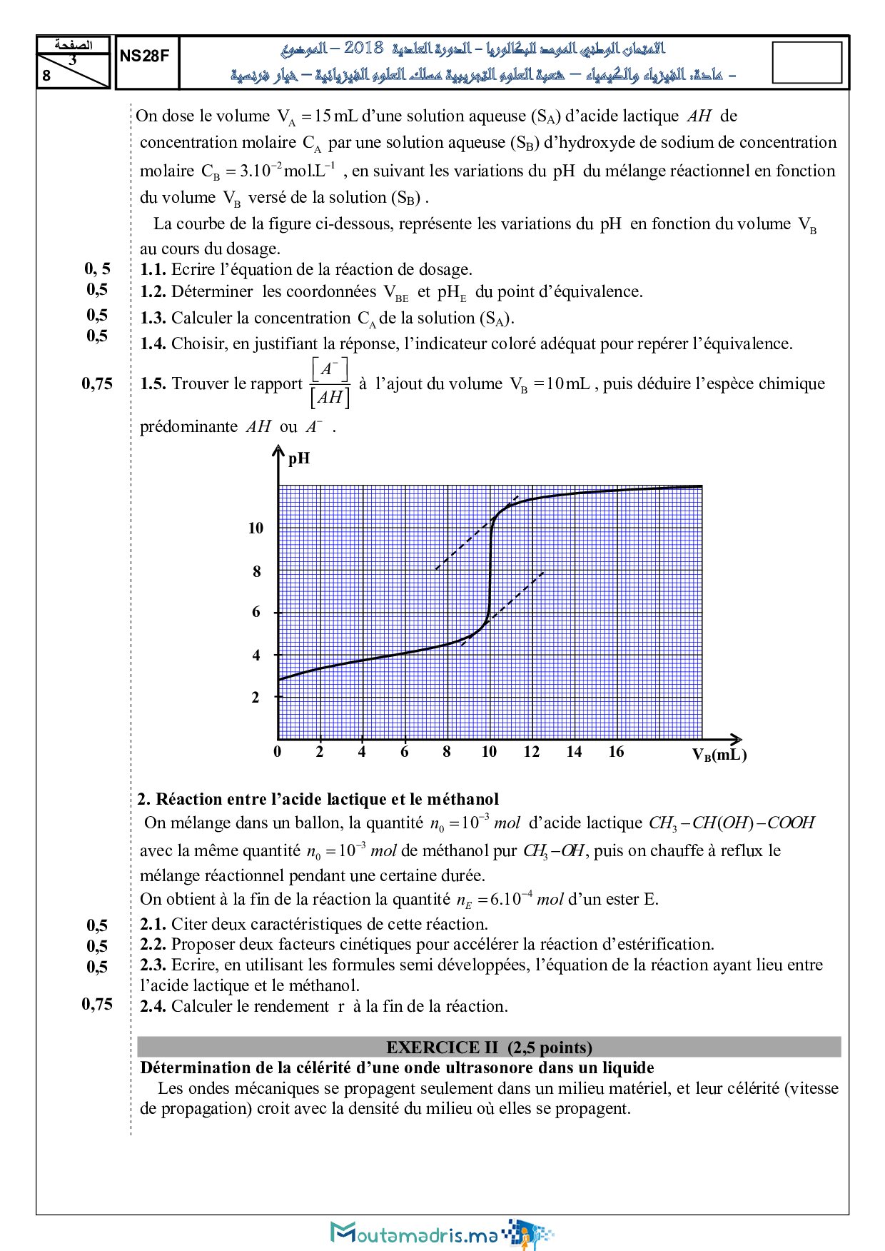 Examen National Physique-Chimie SPC 2018 Normale - Sujet