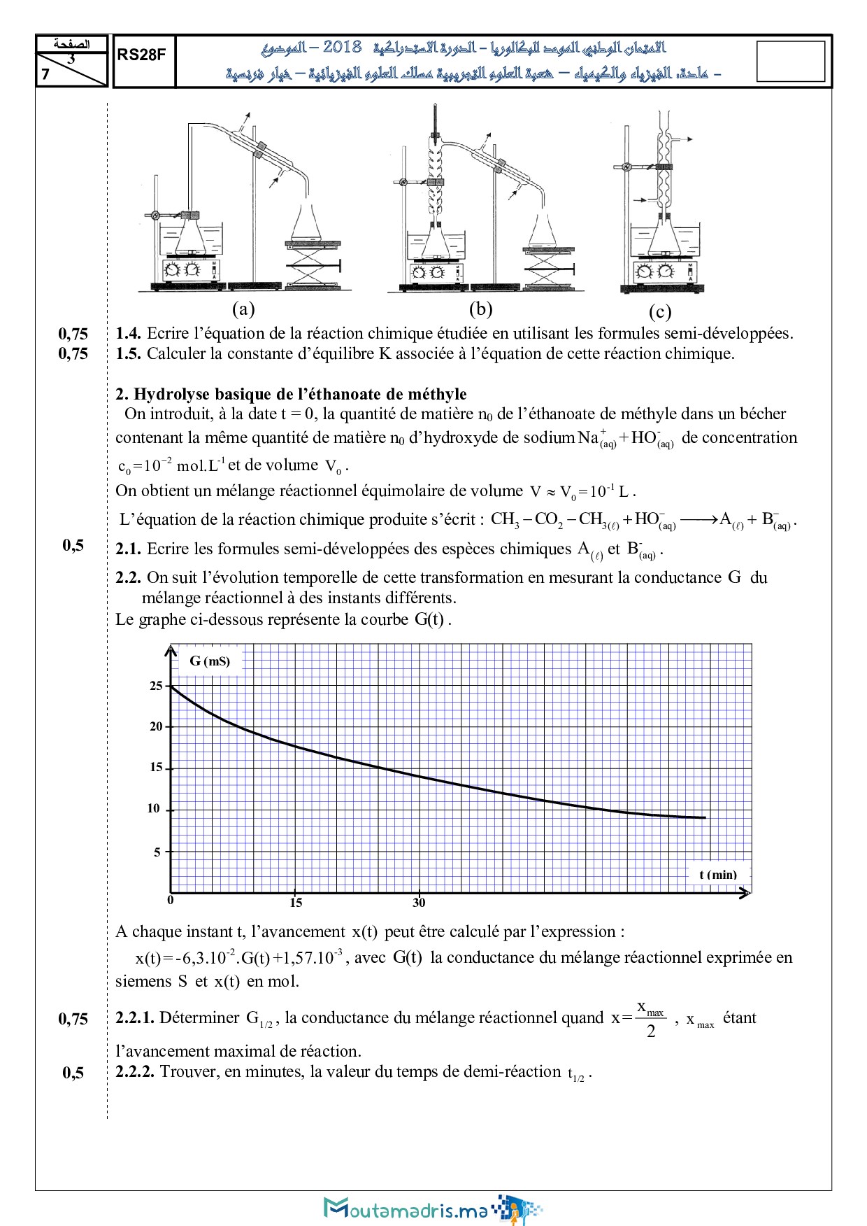 Examen National Physique-Chimie SPC 2018 Rattrapage - Sujet