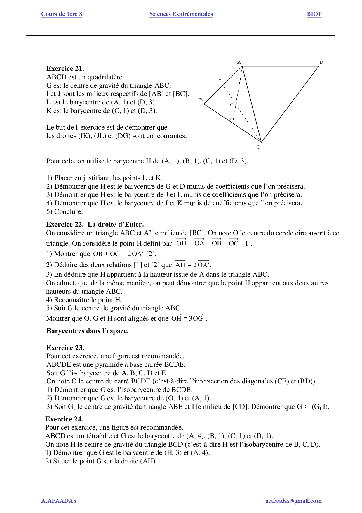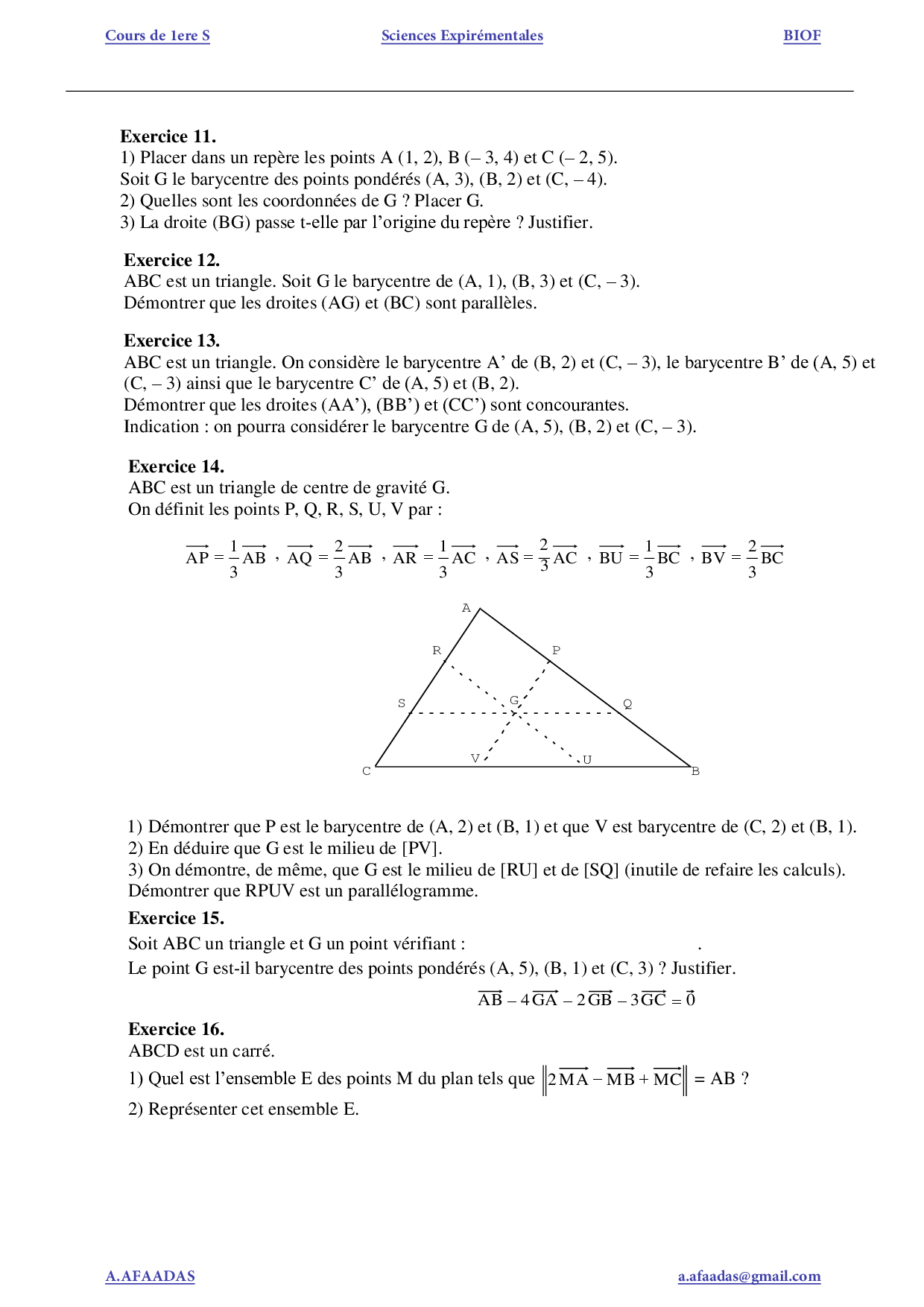 Le barycentre dans le plan - Série d'exercices (FR)