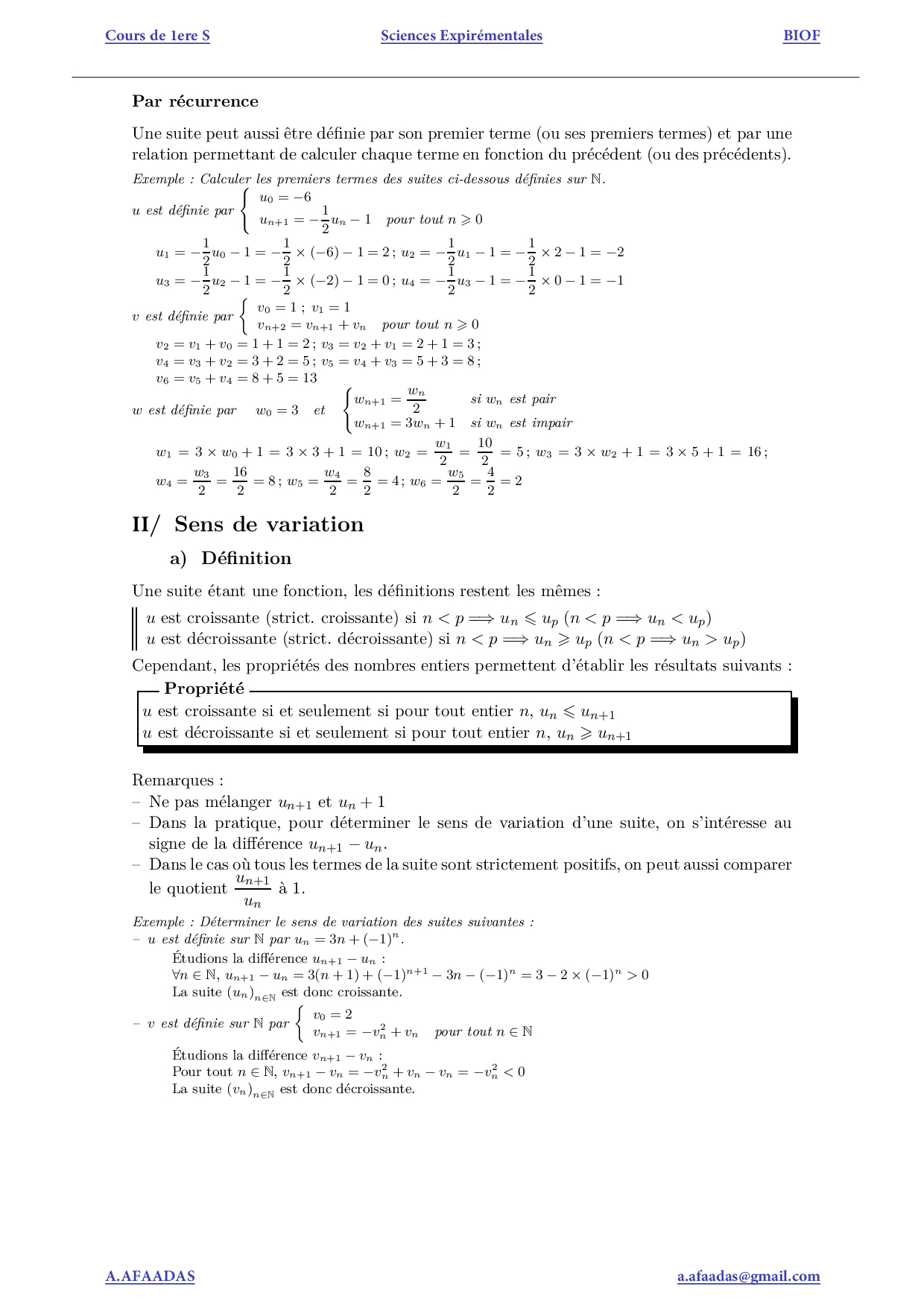 Mathématiques 1er BAC Sciences Expérimentales BIOF