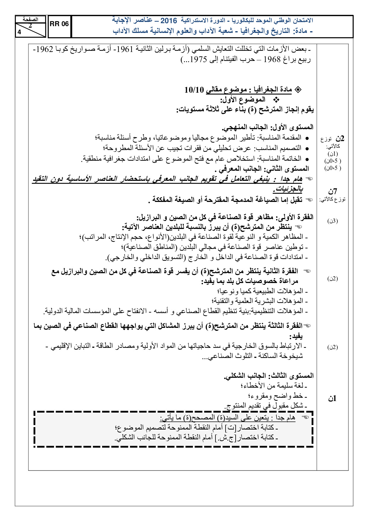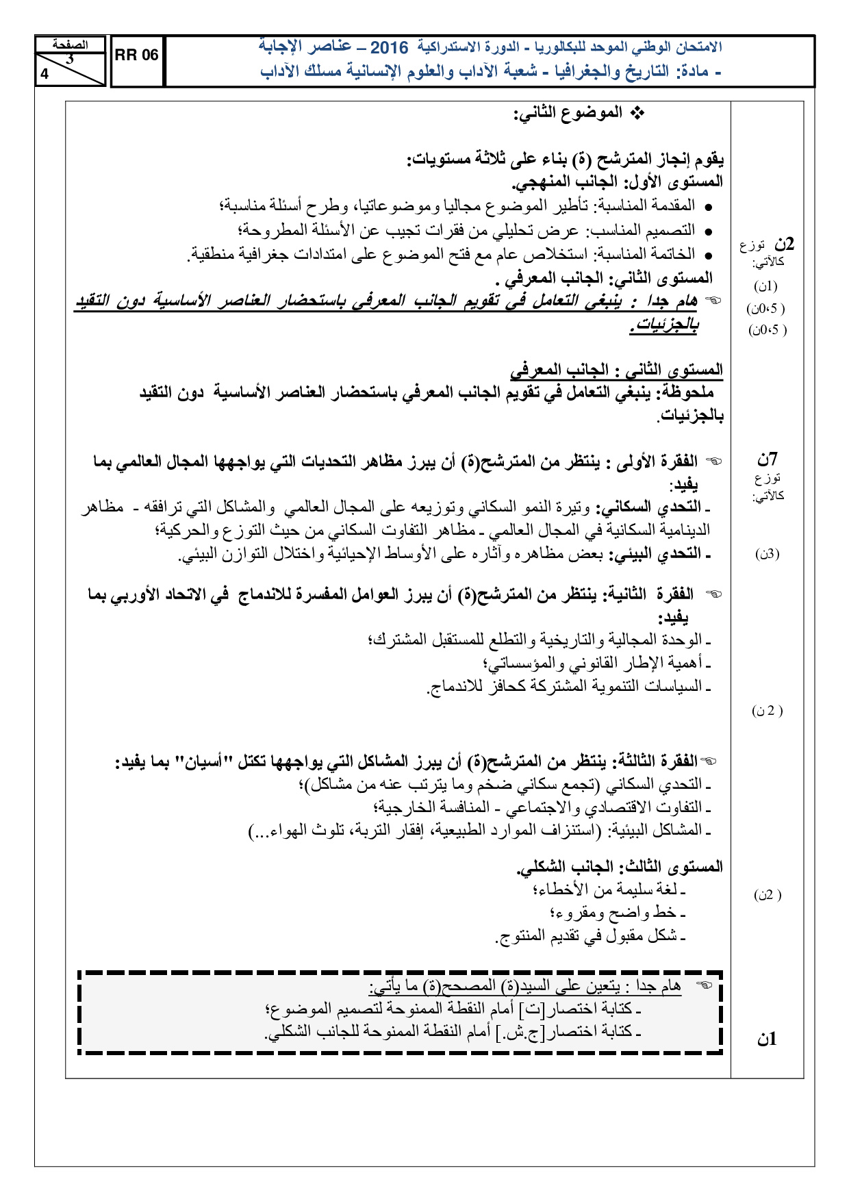 الإجتماعيات (شعبة الآداب) 2016 الدورة الإستدراكية - التصحيح