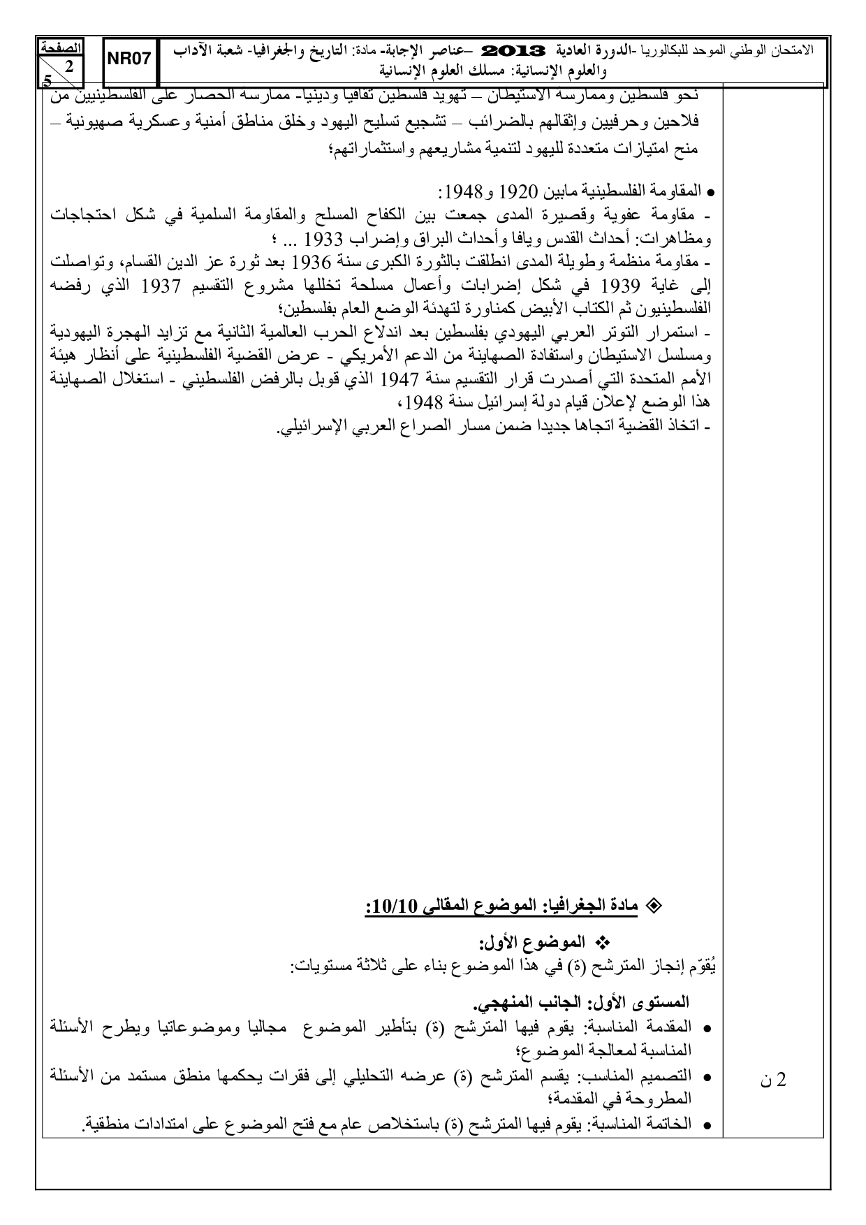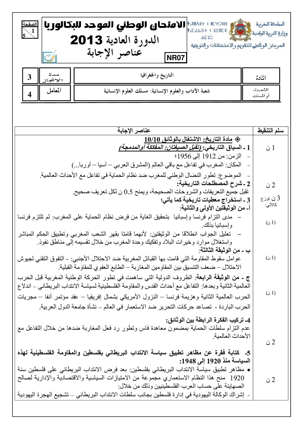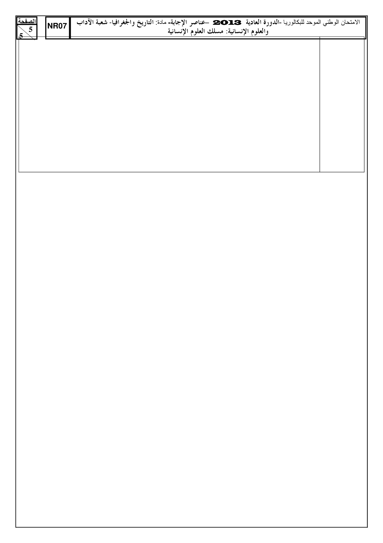 الإجتماعيات (شعبة العلوم الإنسانية) 2013 الدورة العادية - التصحيح