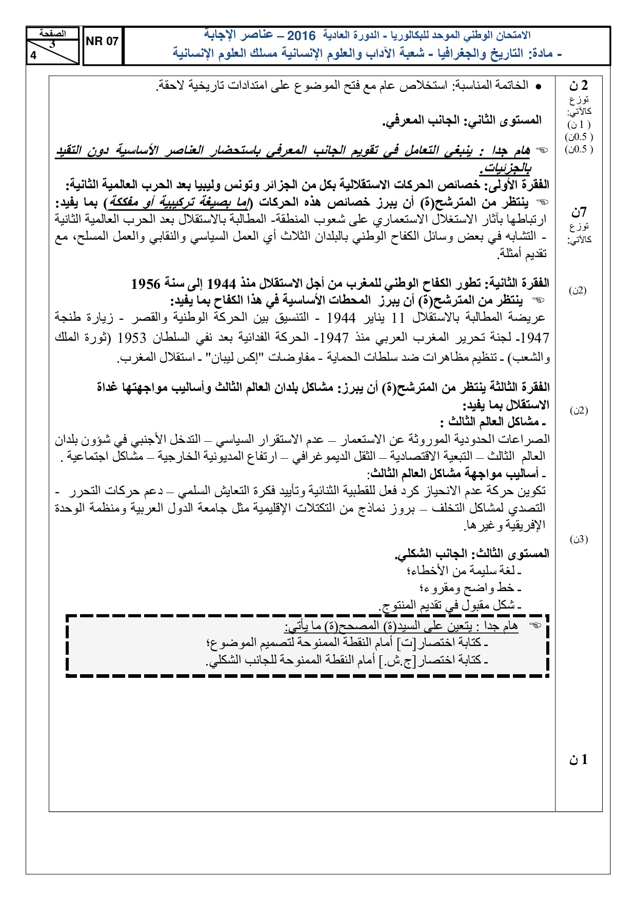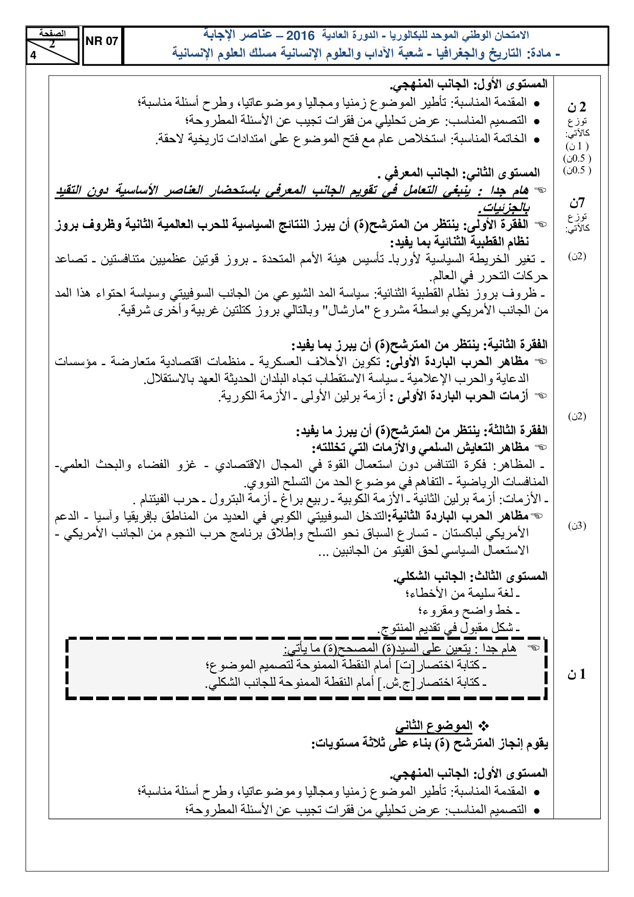 الإجتماعيات (شعبة العلوم الإنسانية) 2016 الدورة العادية - التصحيح