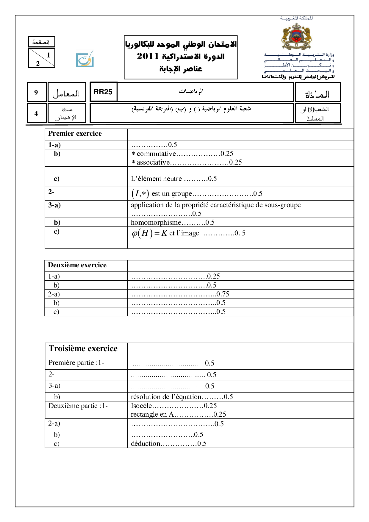 Examen National Mathématiques Sciences Maths 2011 Rattrapage - Corrigé