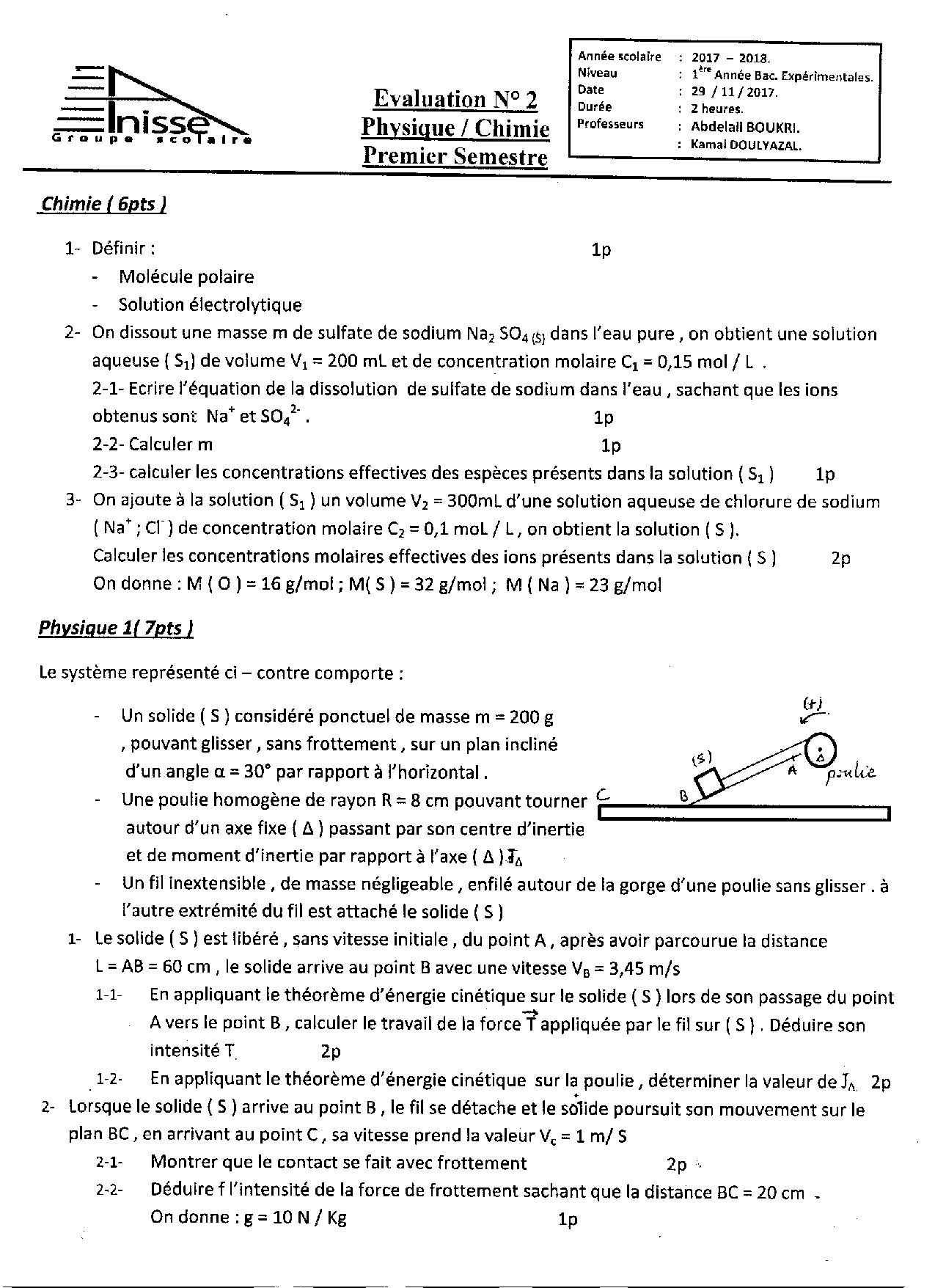 Devoir 2 Modèle 9 - Physique Chimie 1er Bac Semestre 1