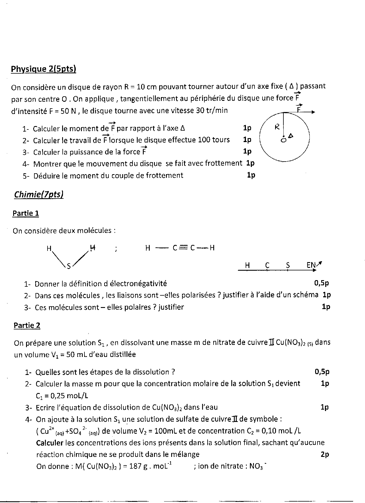 Devoir 2 Modèle 6 - Physique Chimie 1er Bac Semestre 1