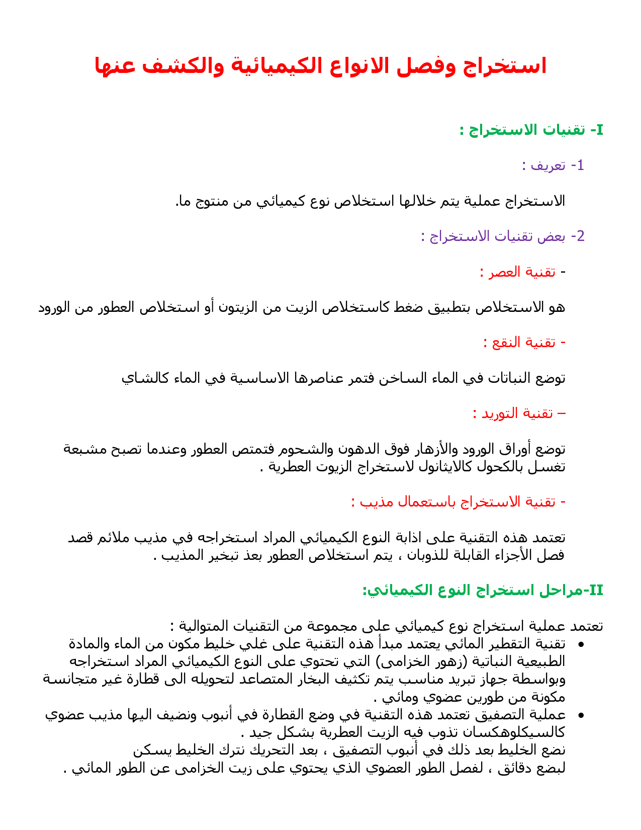 استخراج وفصل الأنواع الكيميائية والكشف عنها - الدرس 1