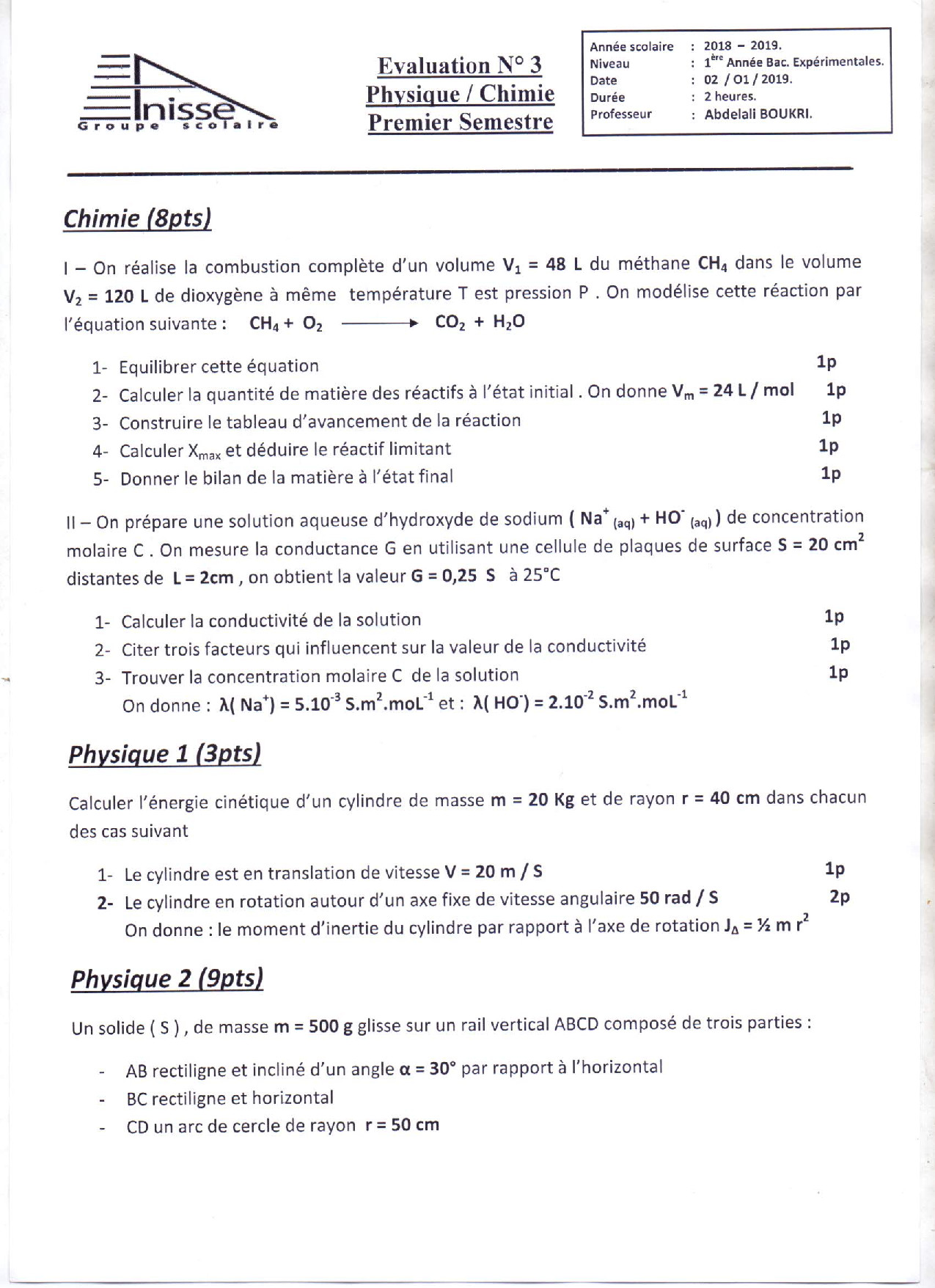 Devoir 3 Modèle 9 - Physique Chimie 1er Bac Semestre 1