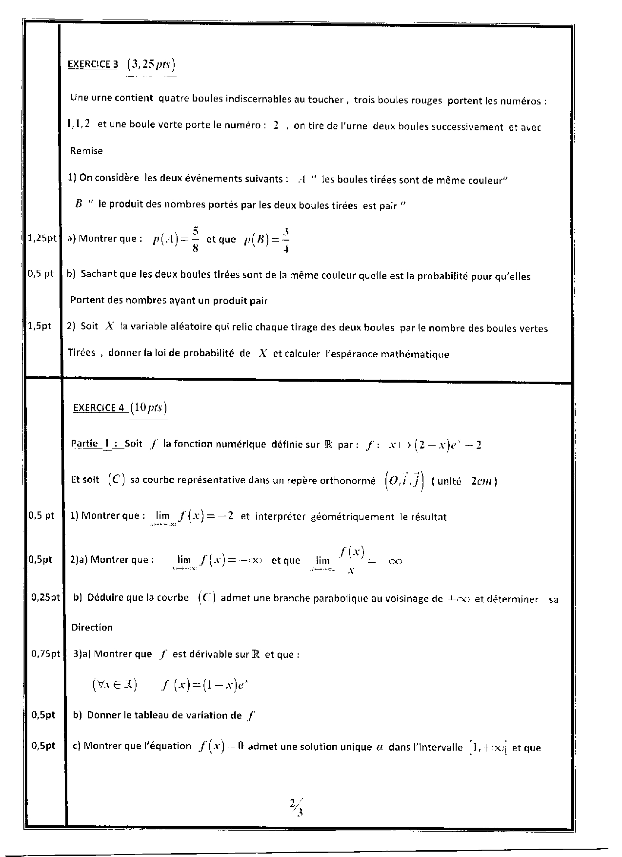 Devoir 2 Modèle 2 - Mathématiques 2 Bac SPC Semestre 2