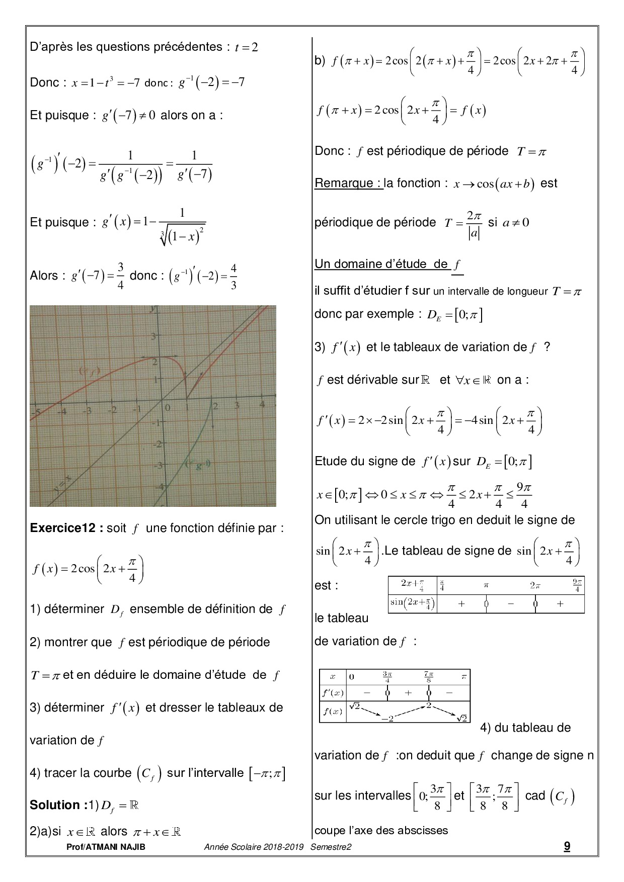 Dérivation et étude des fonctions - Corrigé série d'exercices 1