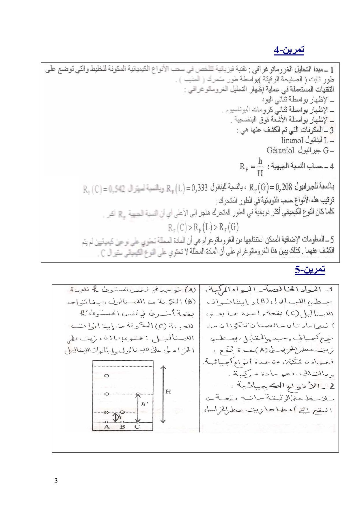 استخراج وفصل الأنواع الكيميائية والكشف عنها - تصحيح سلسلة التمارين 1