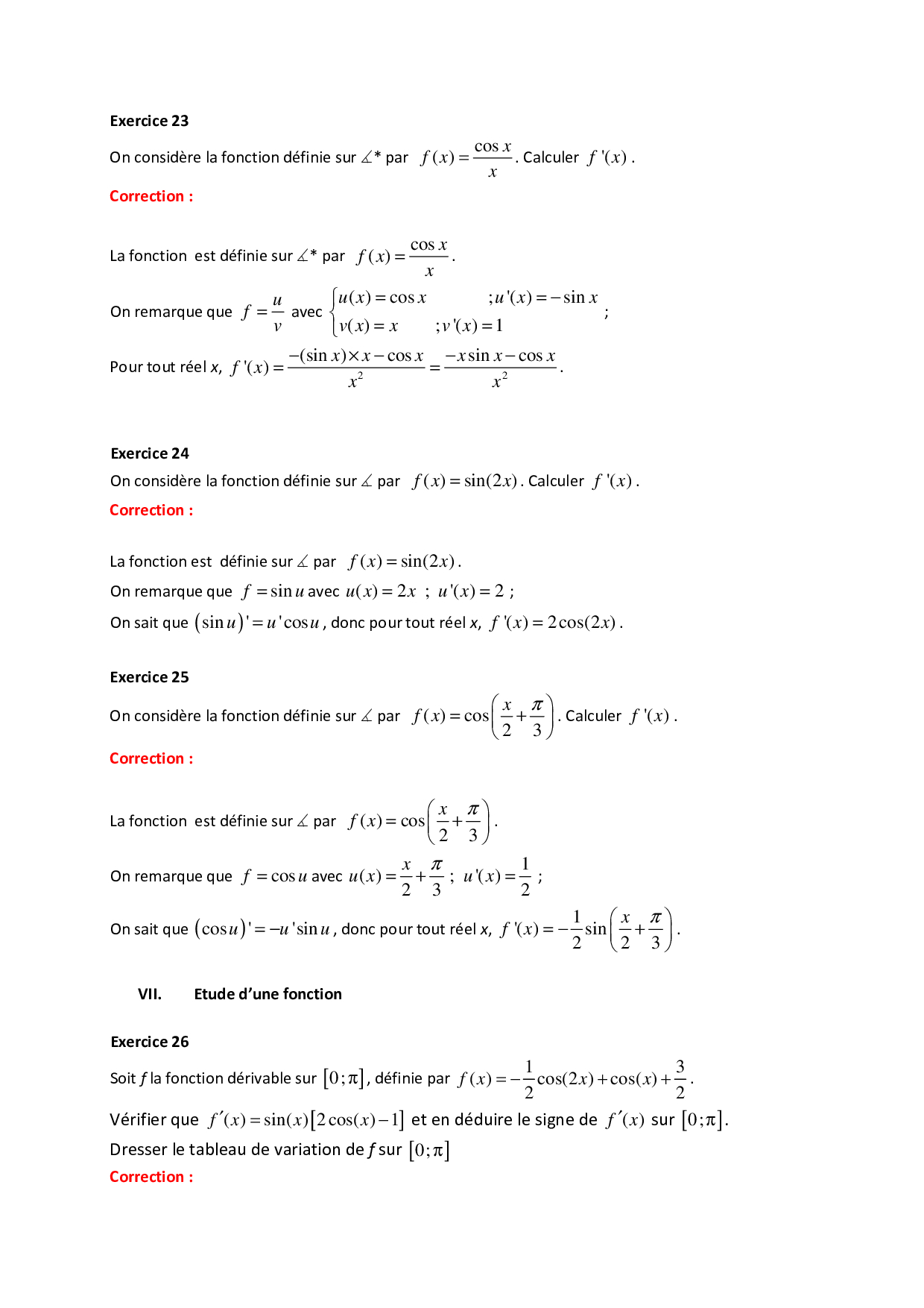 Calcul trigonométrique 2 - Exercices corrigés 3