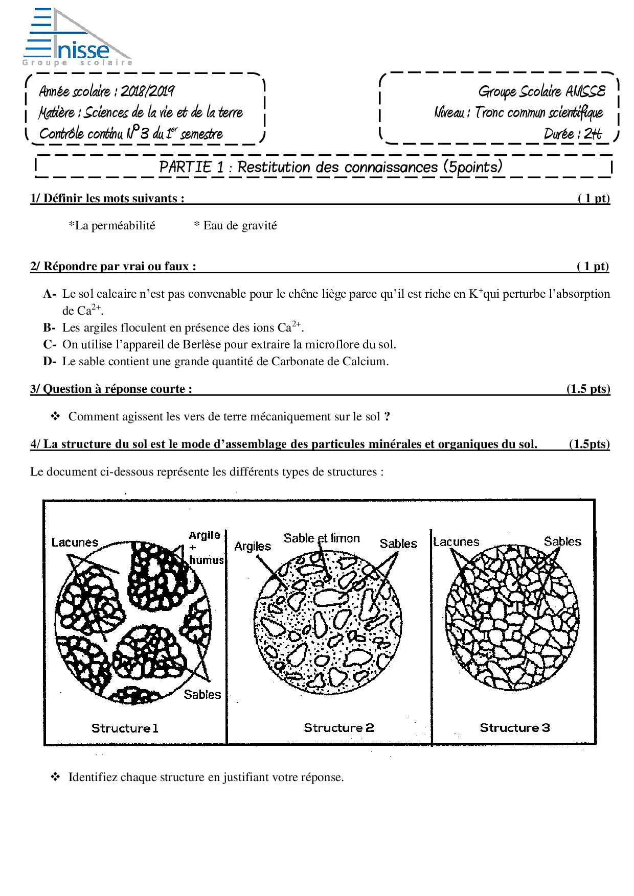 Devoir 3 Modèle 3 - SVT TC Semestre 1
