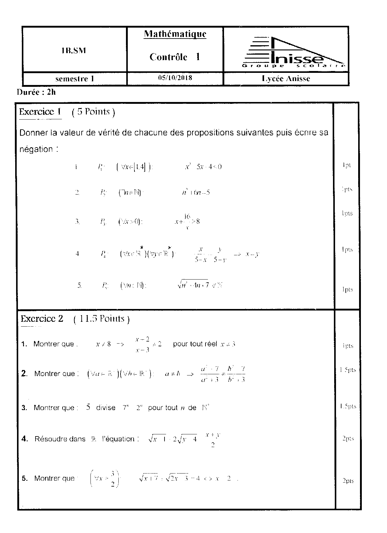 Mathématiques 1er BAC Sciences Mathématiques BIOF