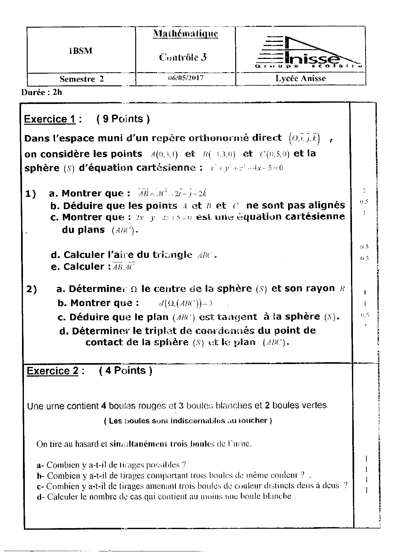 Devoir 3 Modèle 1 - Mathématiques 1 Bac SM Semestre 2