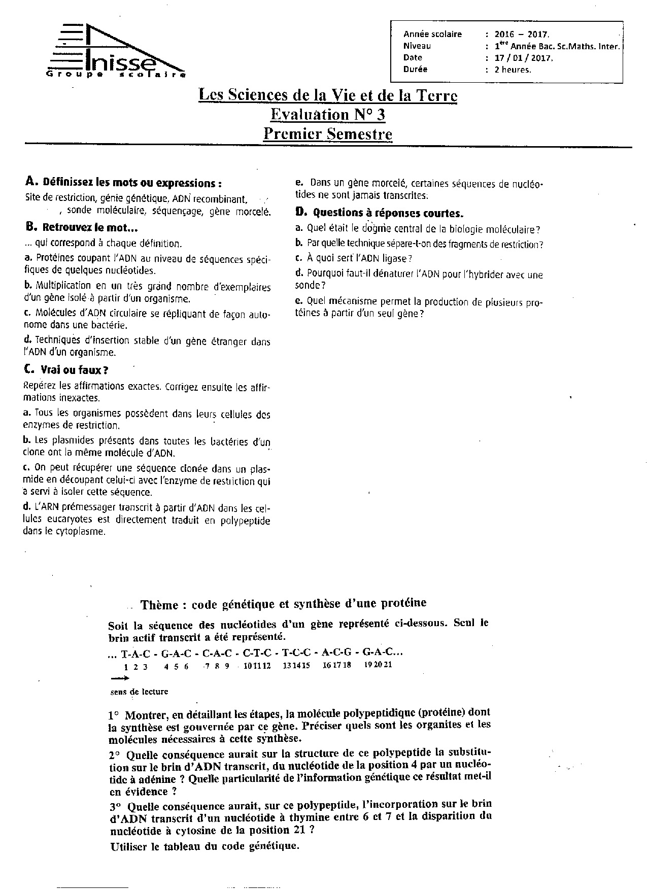 Sciences de la Vie et de la Terre (SVT) 1er BAC Sciences Mathématiques BIOF