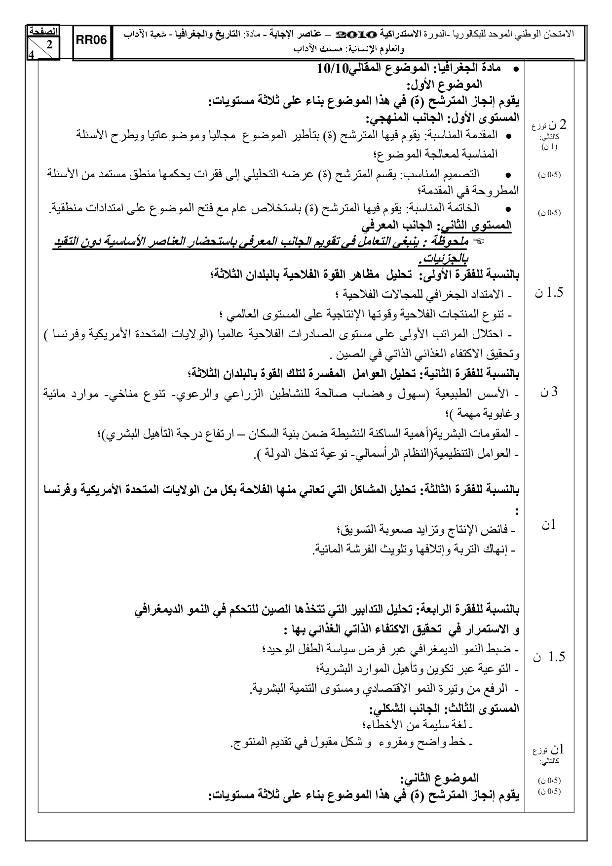 الإجتماعيات (شعبة الآداب) 2010 الدورة الإستدراكية - التصحيح