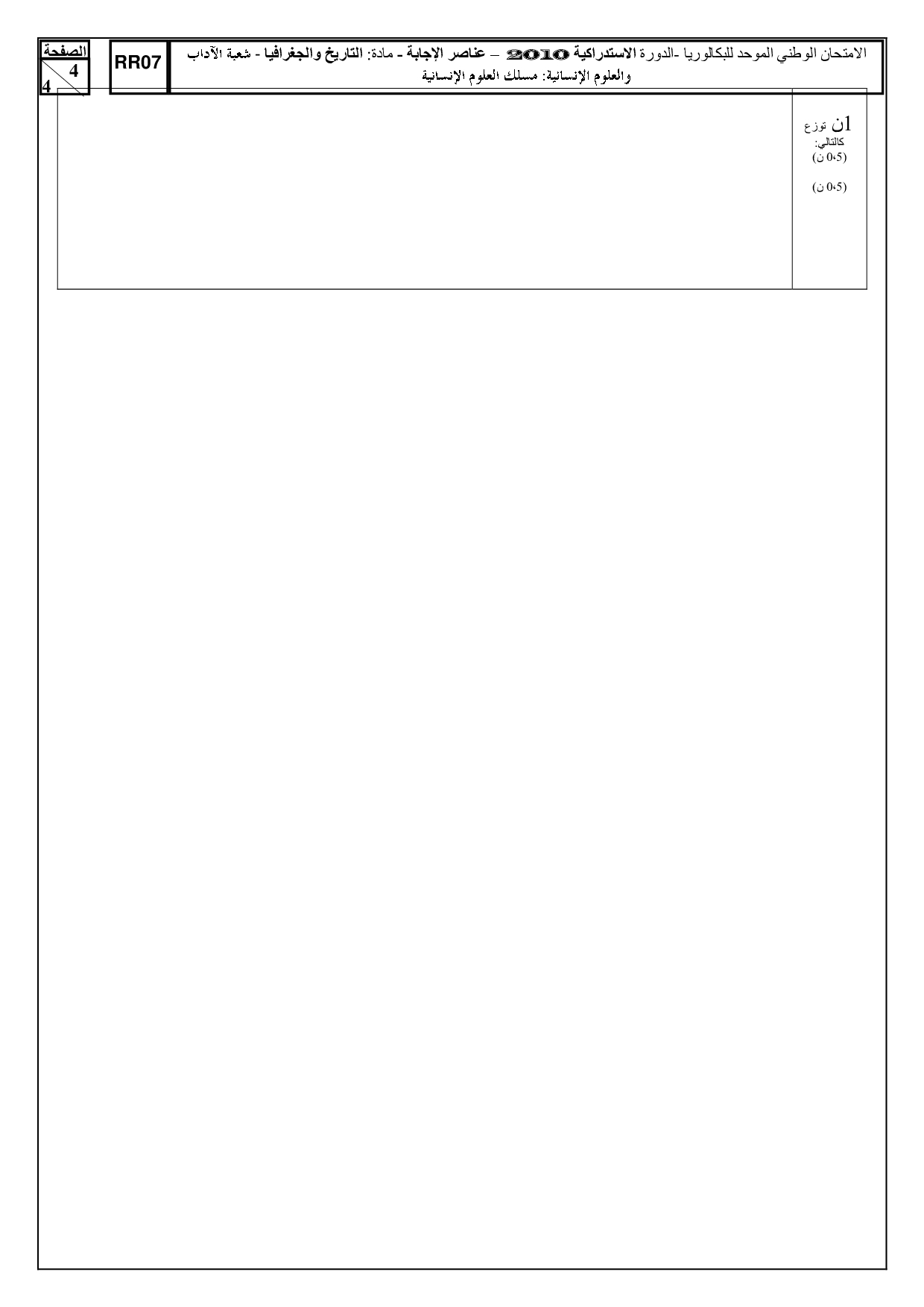 الإجتماعيات (شعبة العلوم الإنسانية) 2010 الدورة الإستدراكية - التصحيح