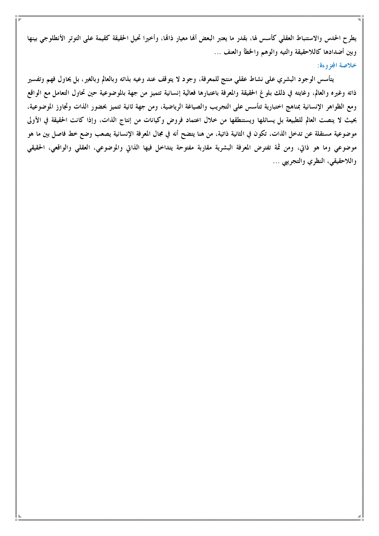 الفلسفة: الثانية باك علوم إنسانية
