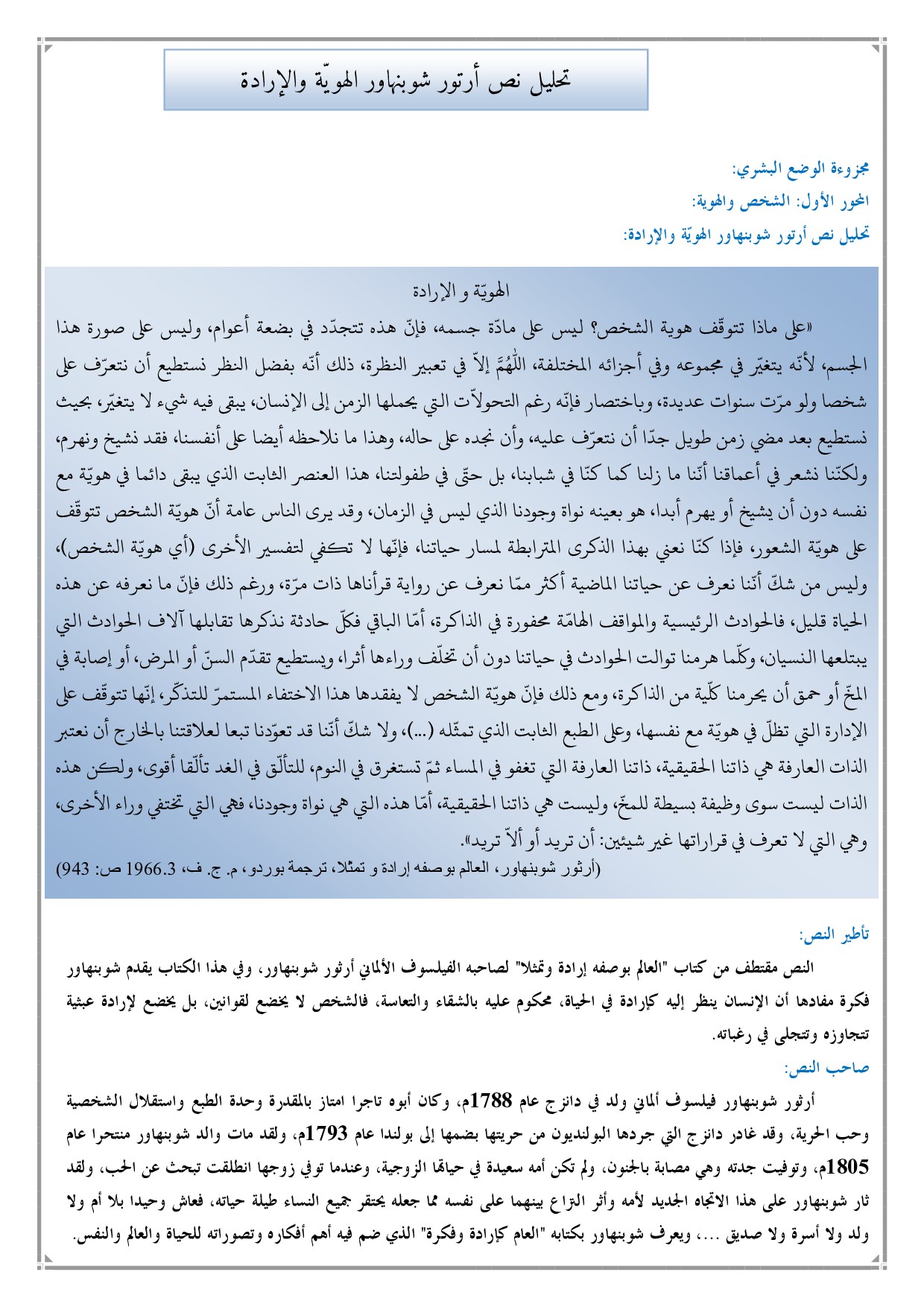 تحليل نص أرتور شوبنهاور: الهويّة والإرادة