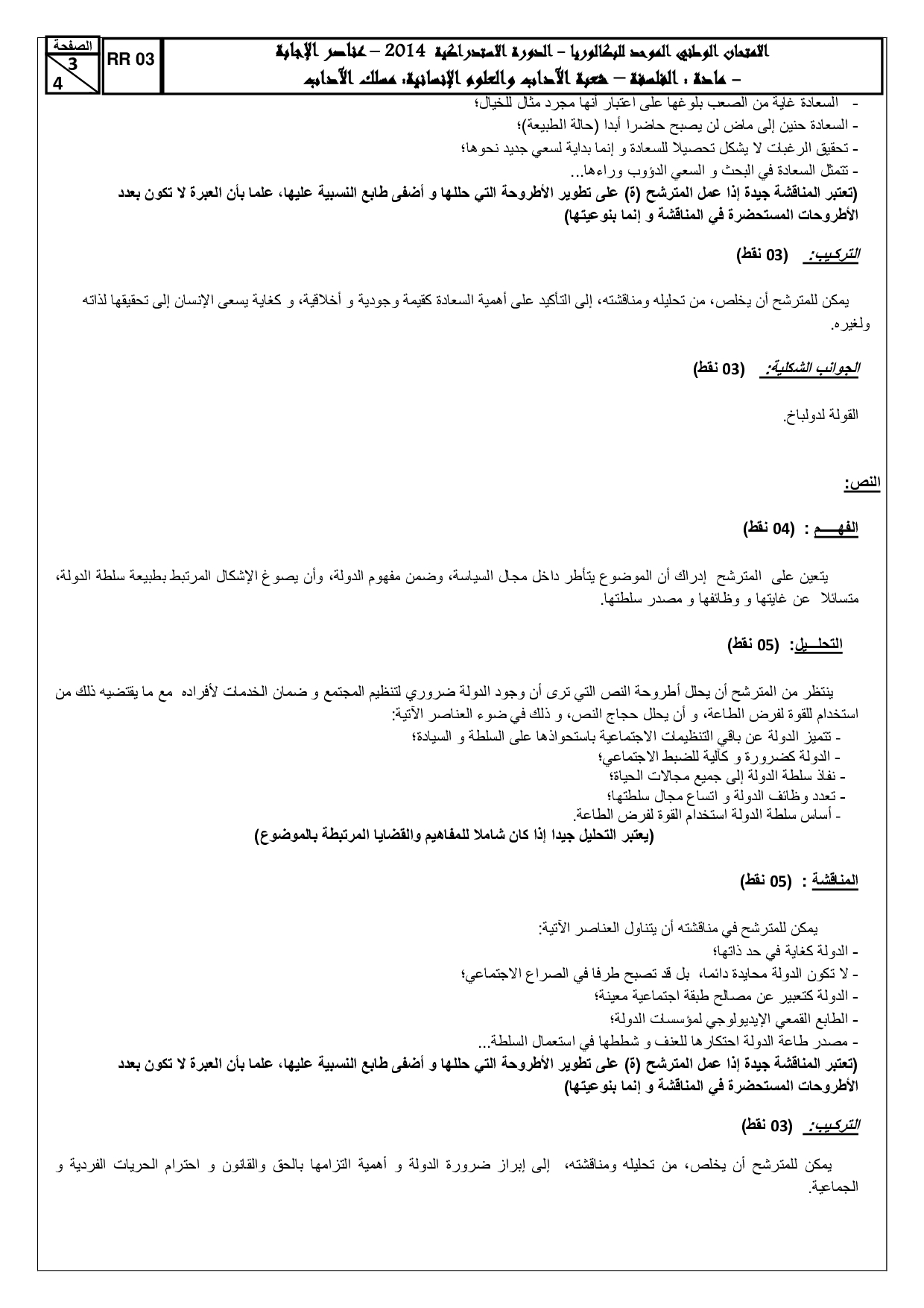 الفلسفة (شعبة الآداب) 2014 الدورة الإستدراكية - التصحيح
