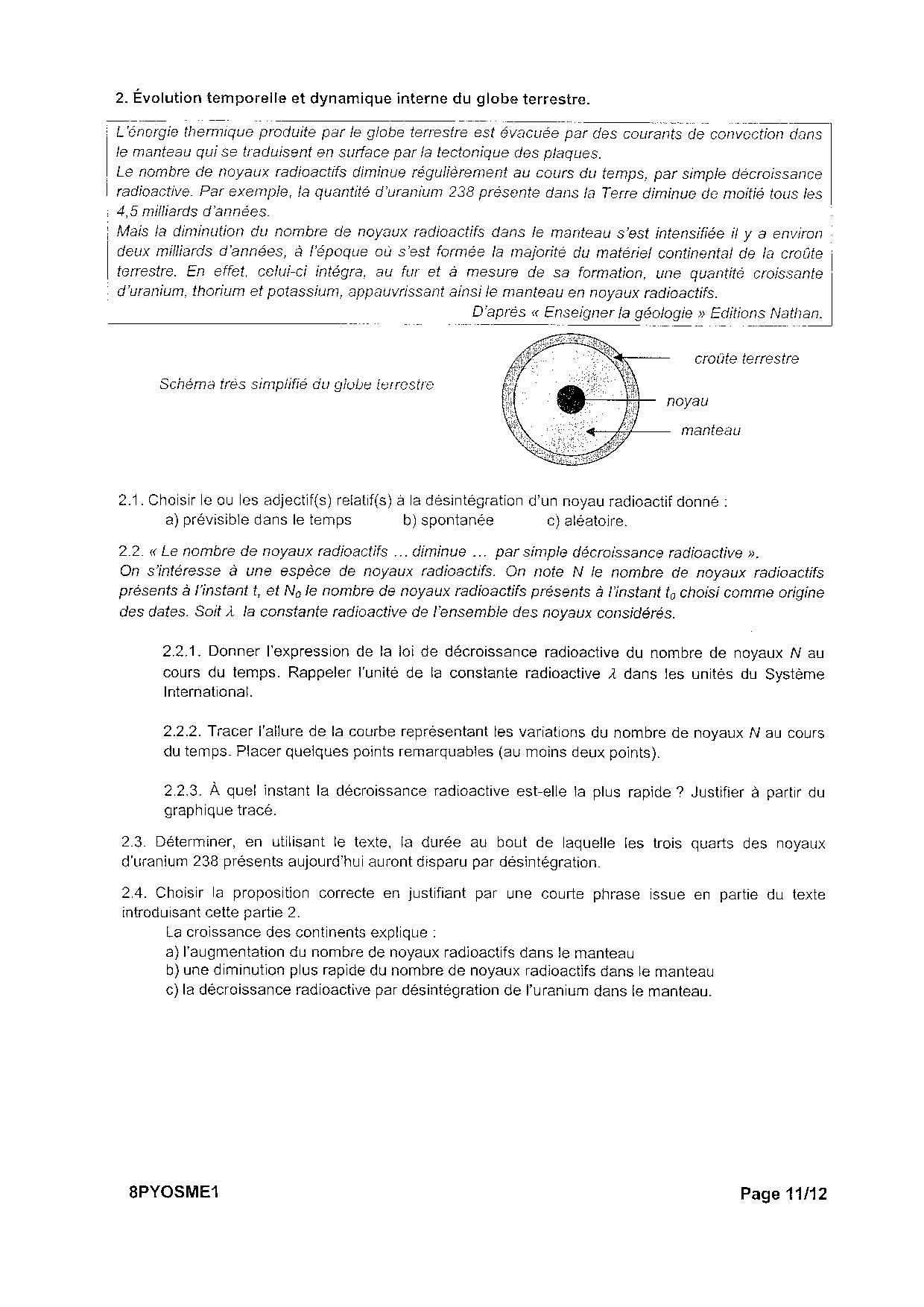Bac S Physique Chimie Métropole 2008 - Sujet