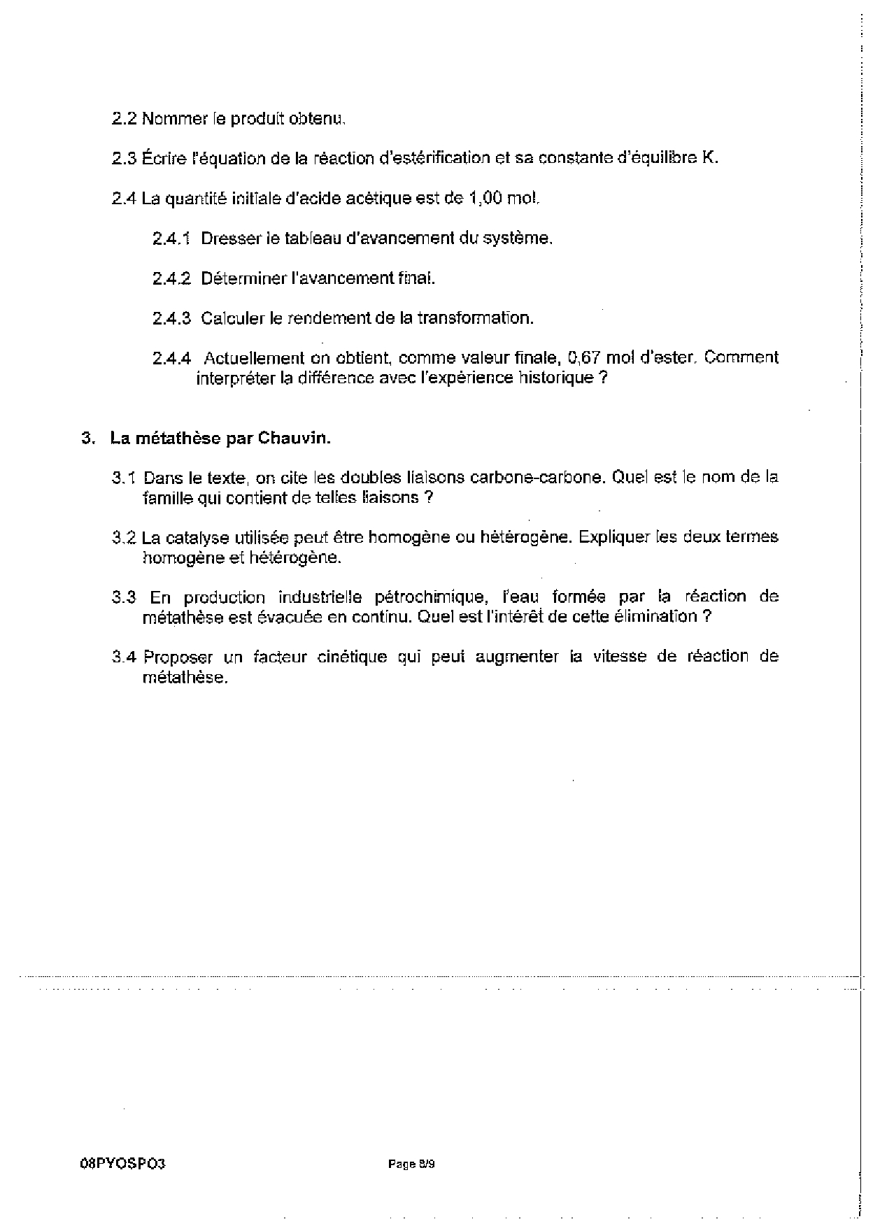 Bac S Physique Chimie Polynésie 2008 (Session de remplacement) - Sujet