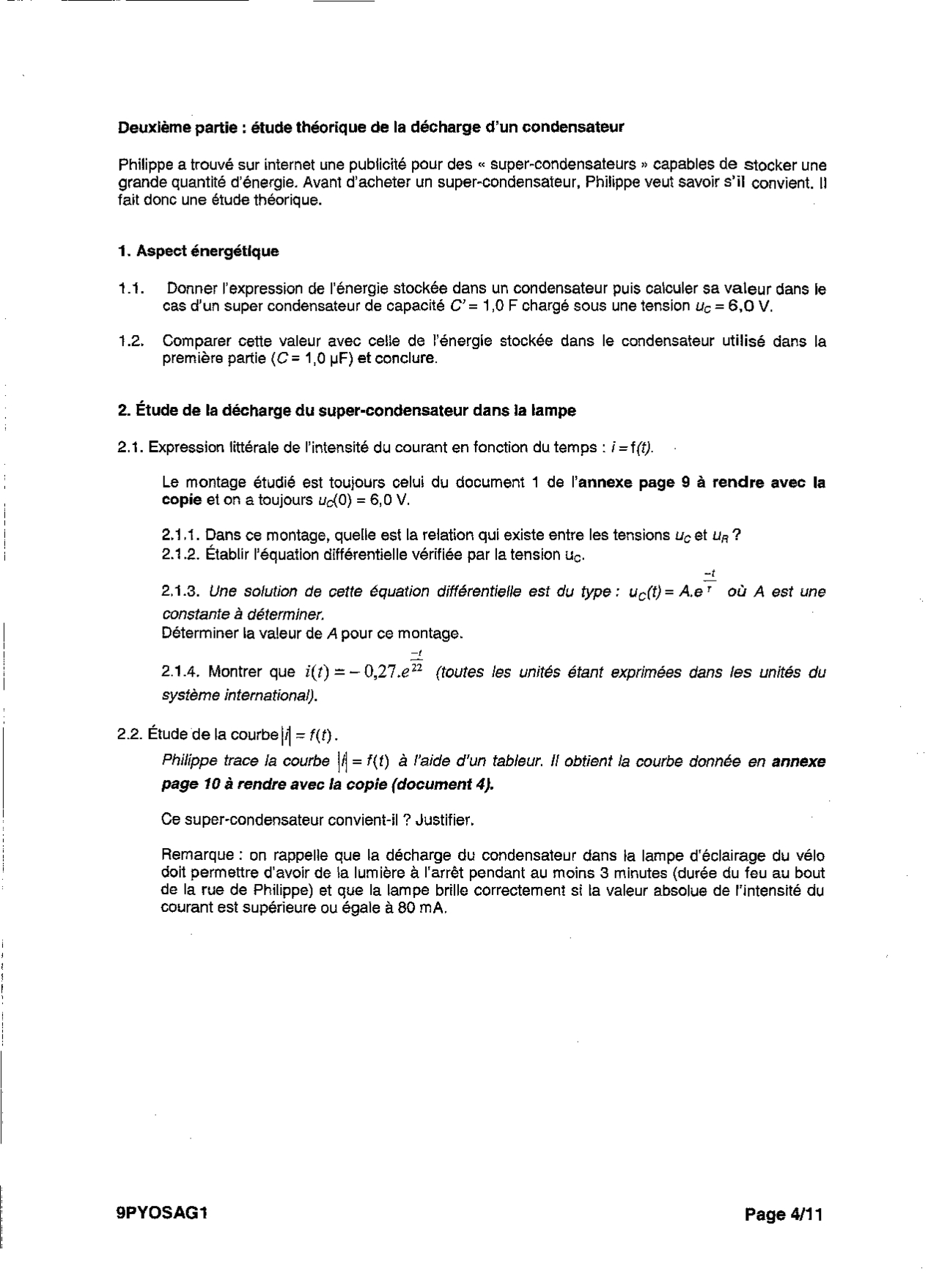 Bac S Physique Chimie Antilles-Guyane 2009 - Sujet