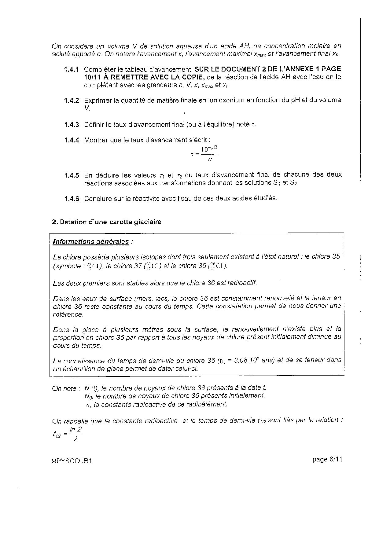 Physique et Chimie: Annales Bac S