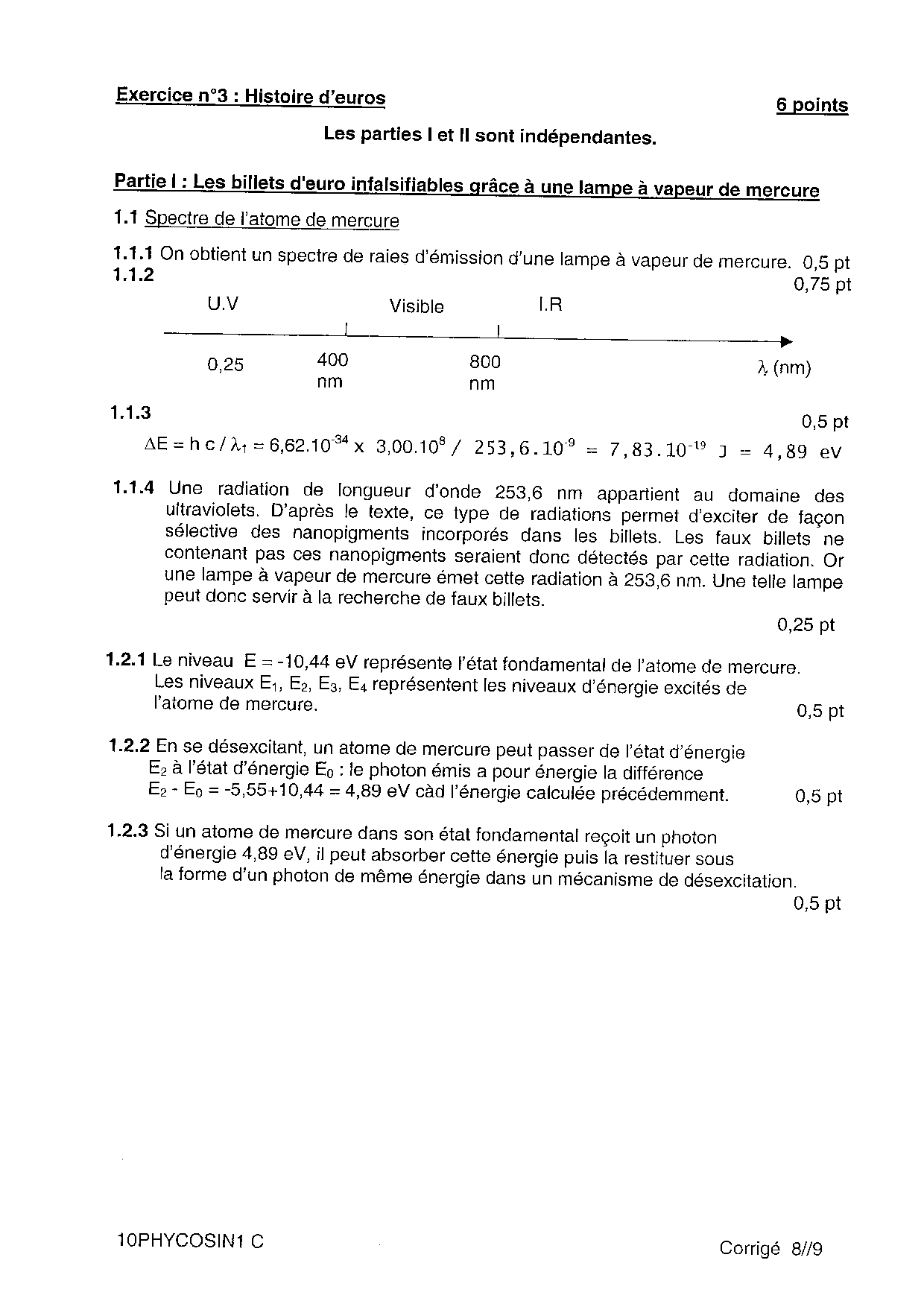 Bac S Physique Chimie Pondichéry 2010 - Corrigé