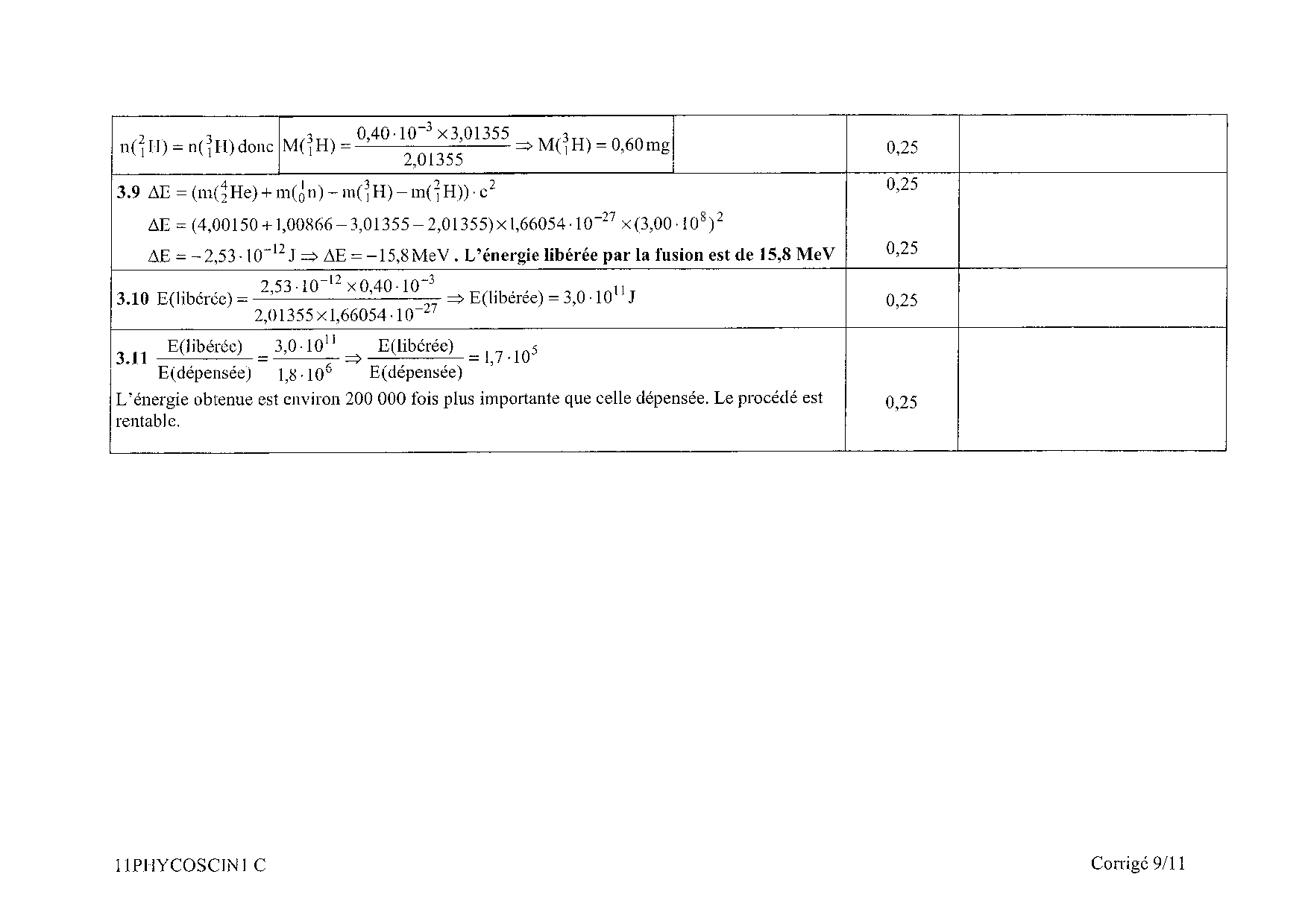 Bac S Physique Chimie Pondichéry 2011 - Corrigé