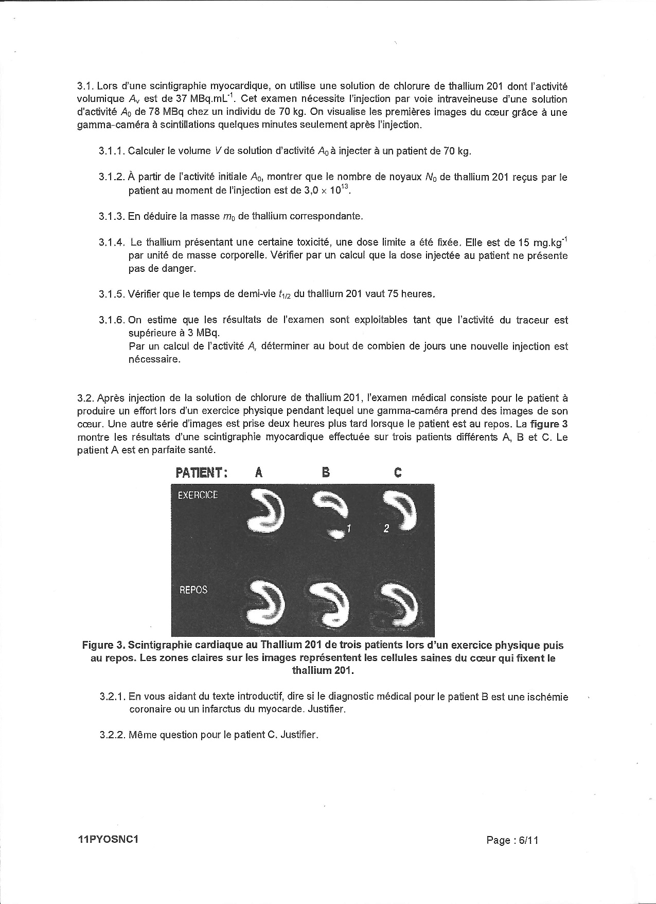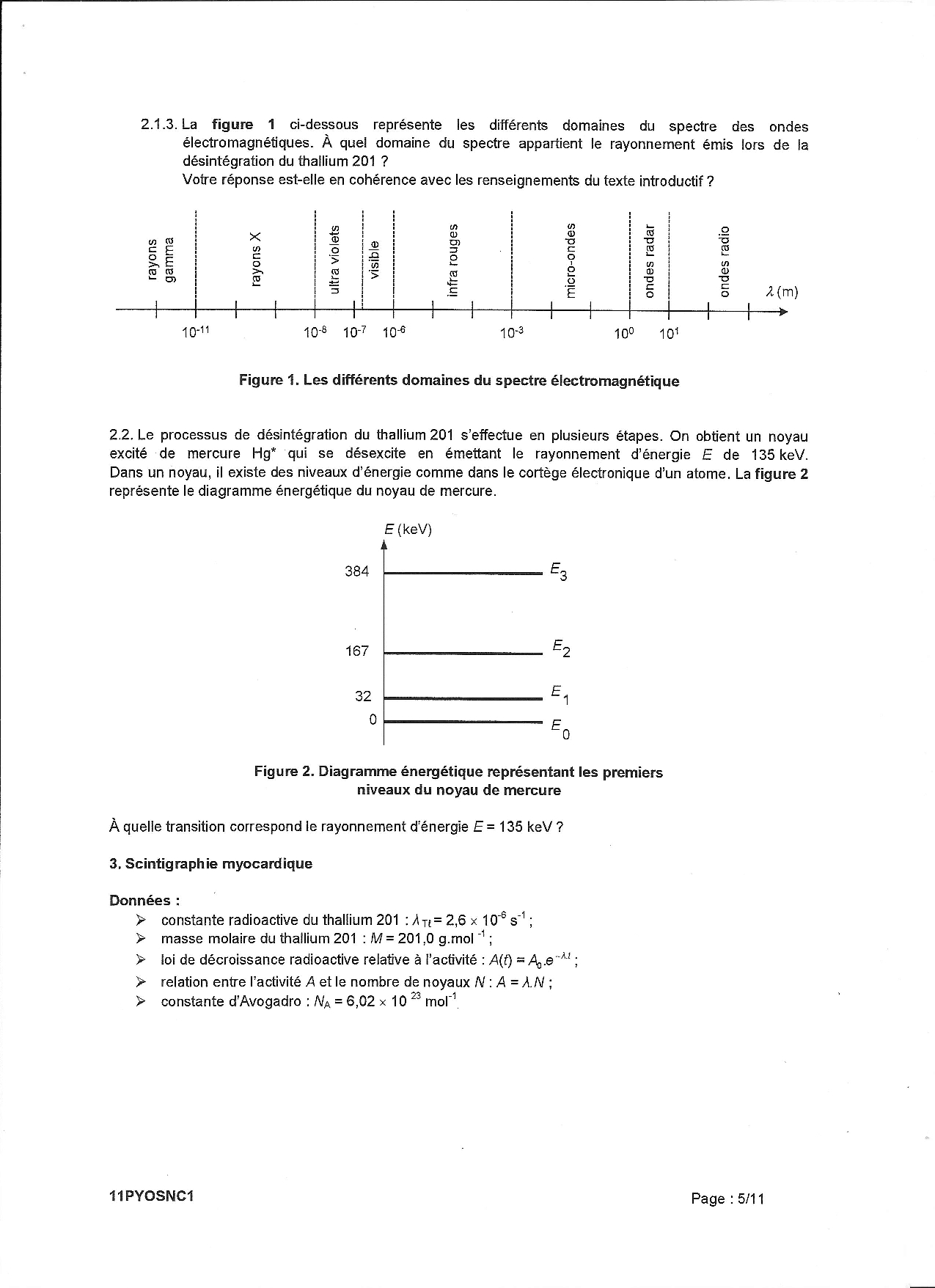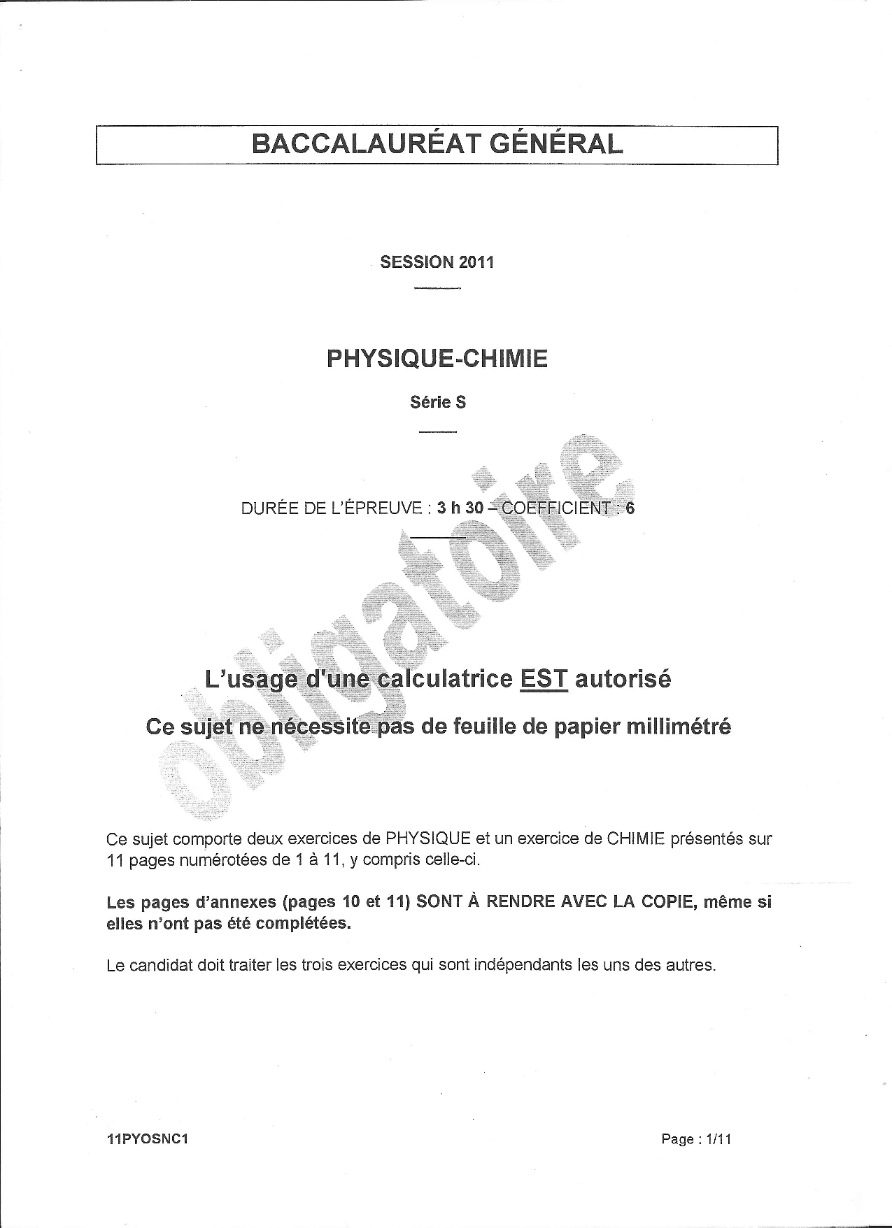 Bac S Physique Chimie Nouvelle-Calédonie 2011 - Sujet