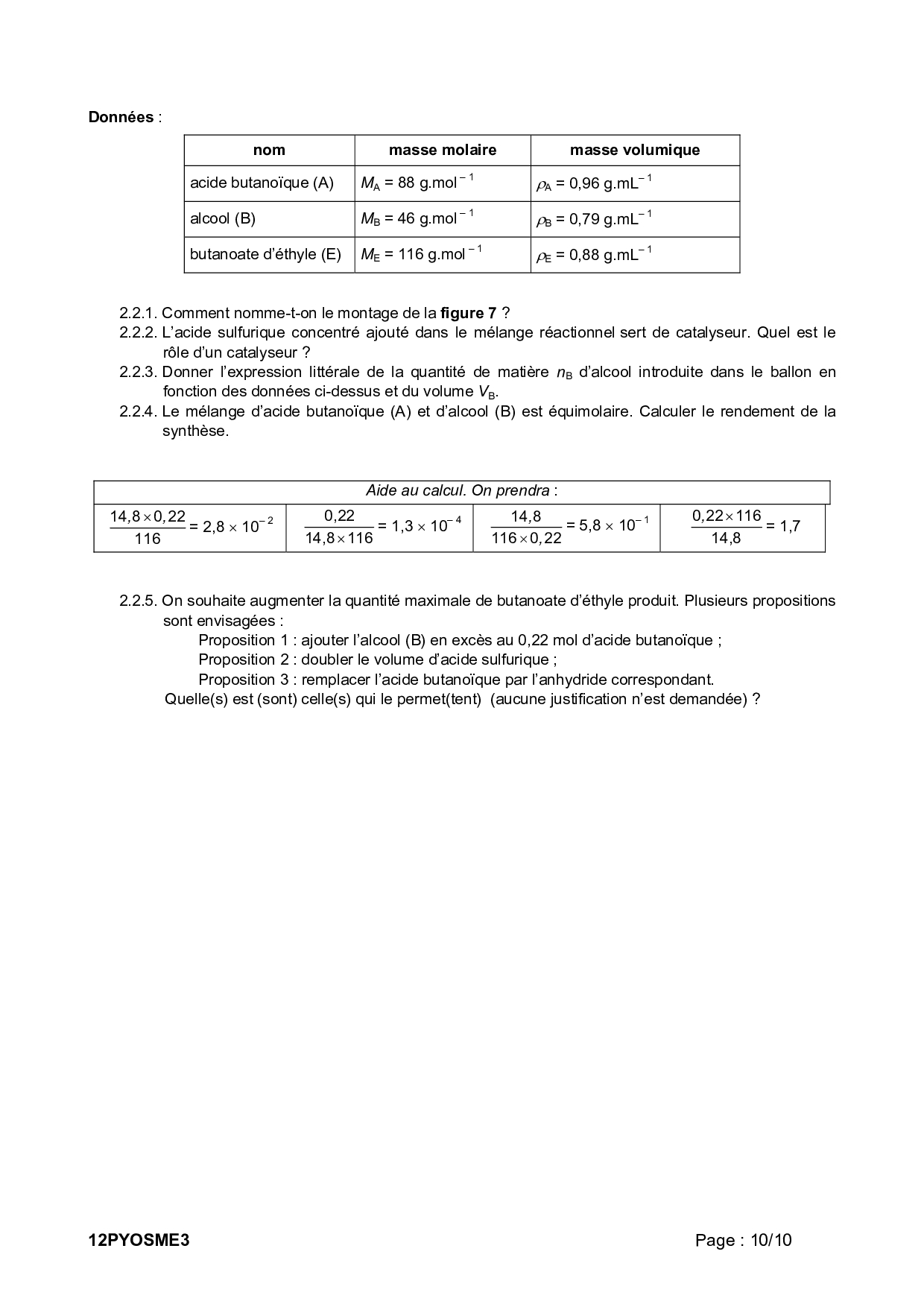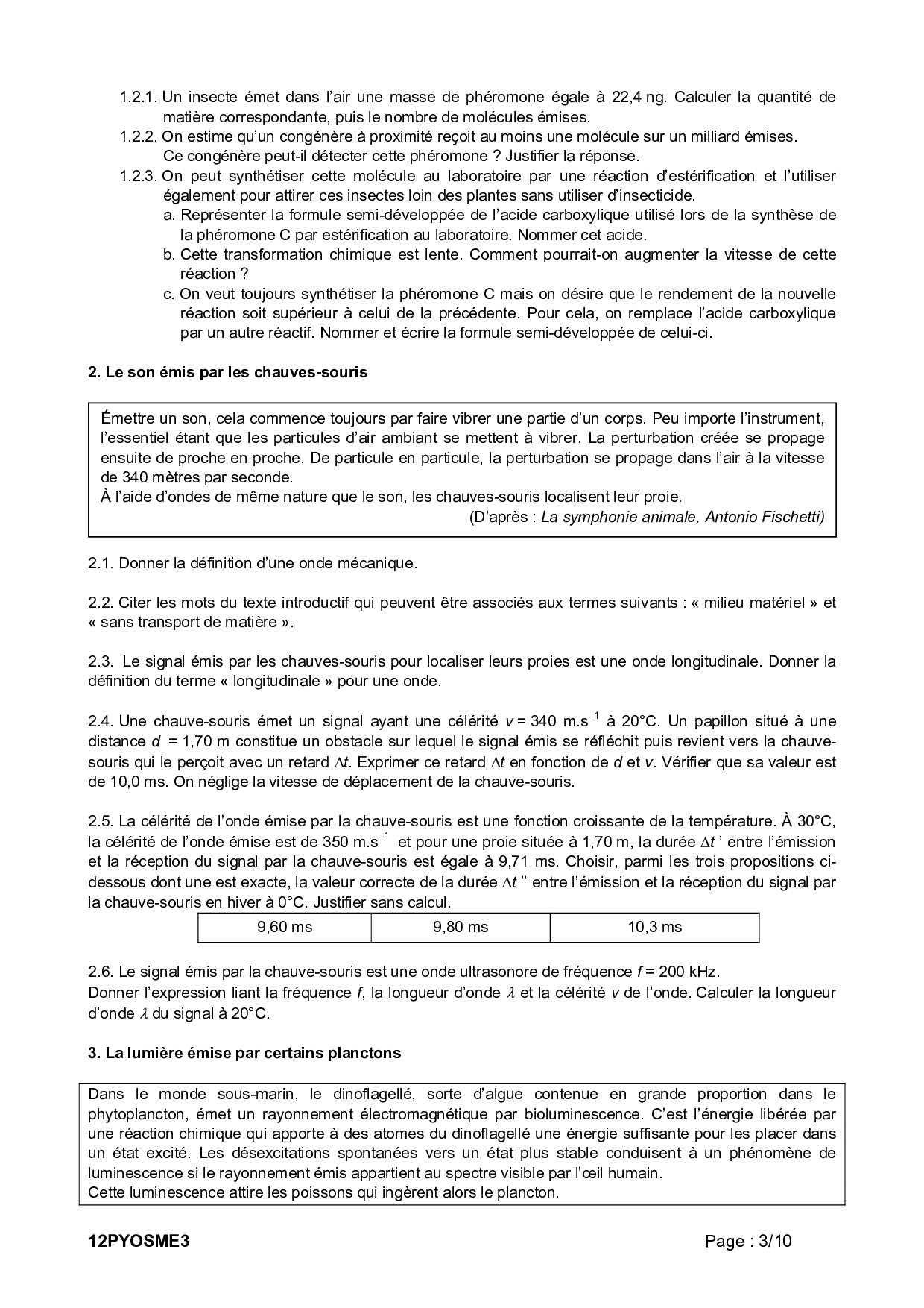 Bac S Physique Chimie Métropole 2012 (Session de remplacement) - Sujet