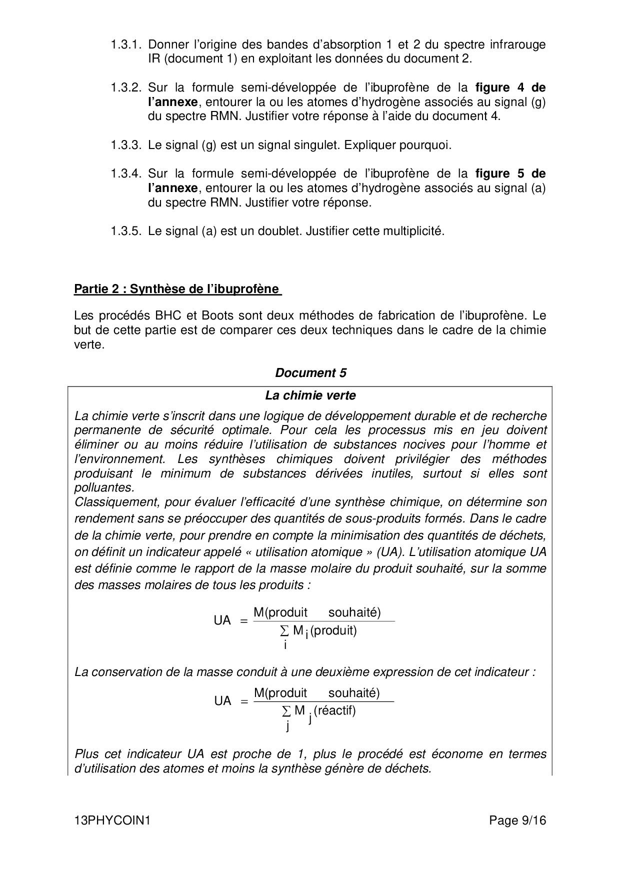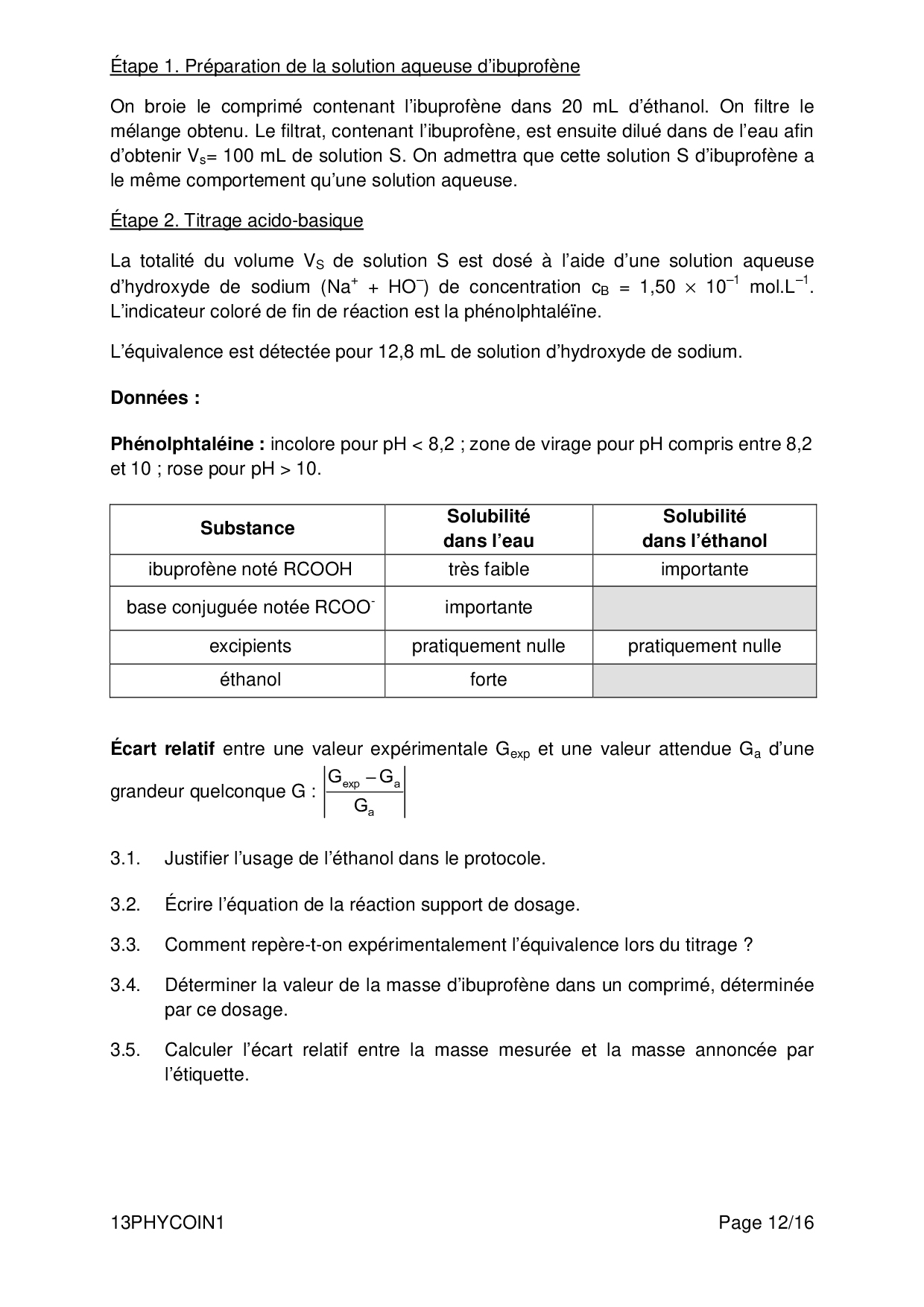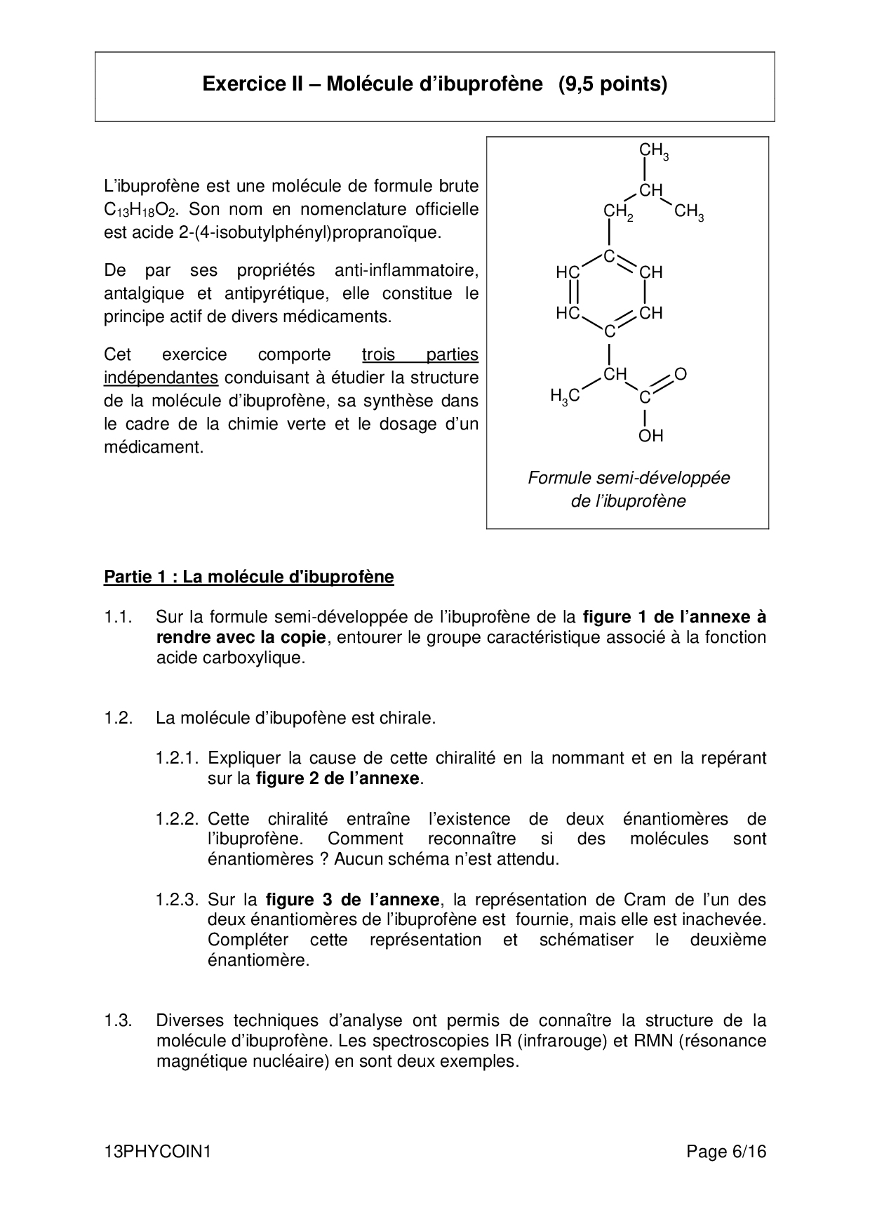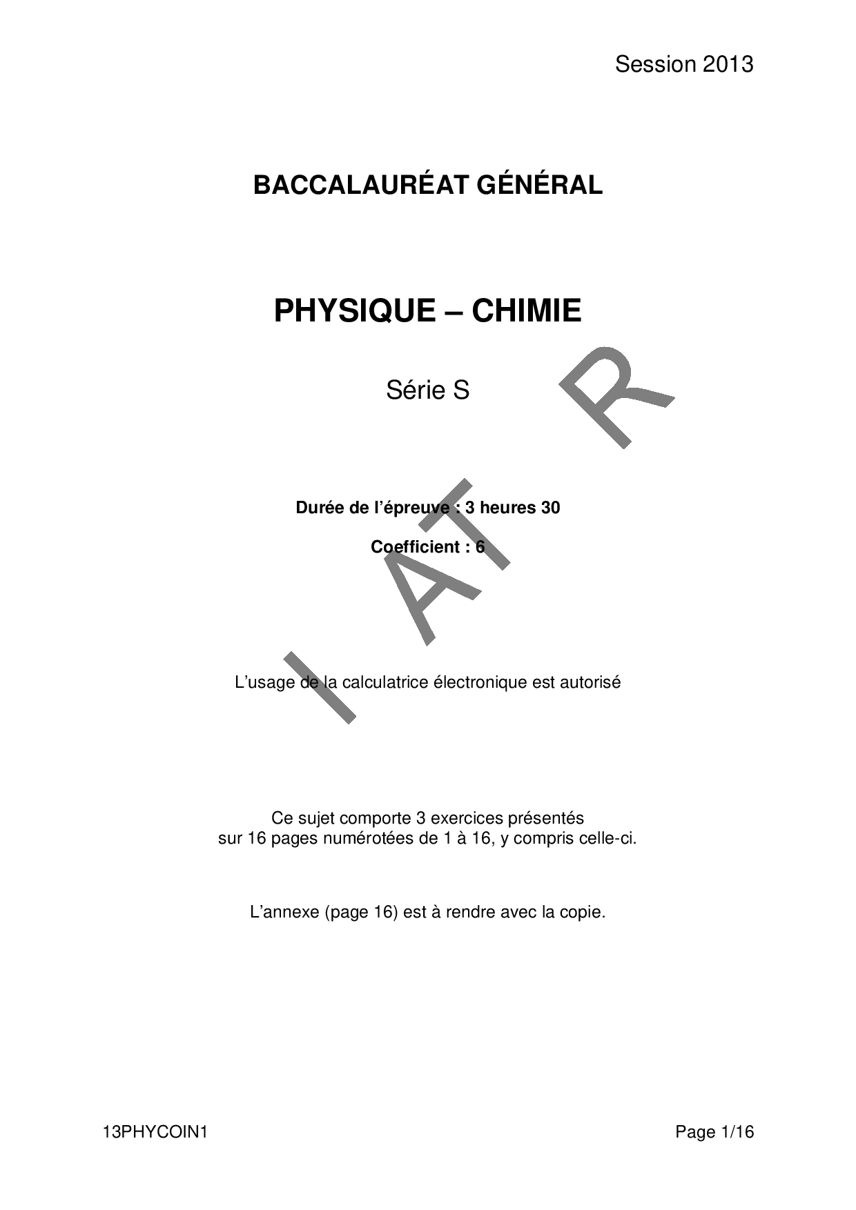 Bac S Physique Chimie Pondichéry 2013 - Sujet