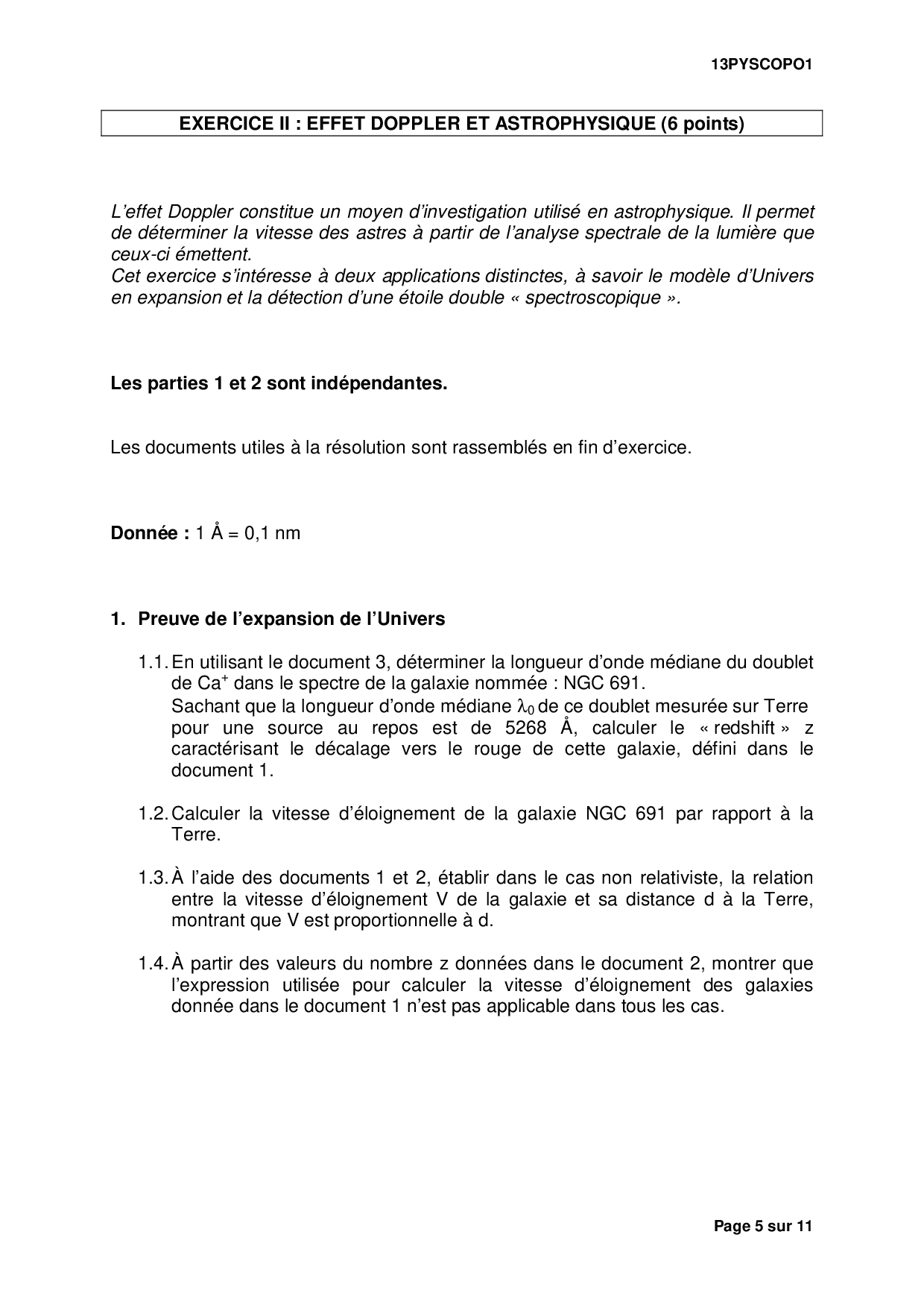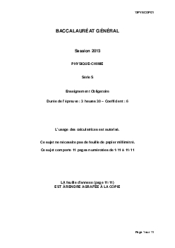 Bac S Physique Chimie Polynésie 2013 - Sujet