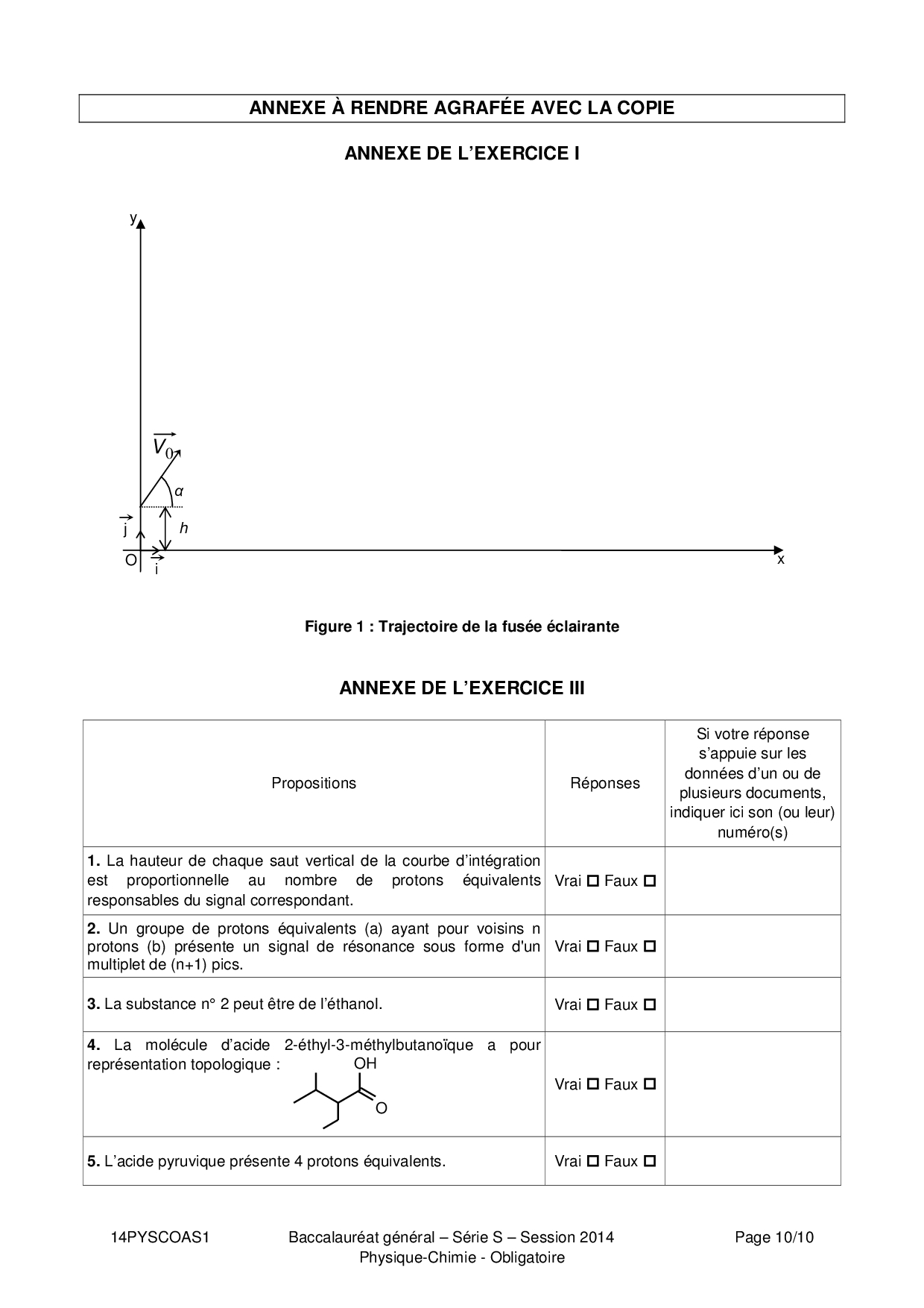 Bac S Physique Chimie Amérique du Sud 2014 - Sujet