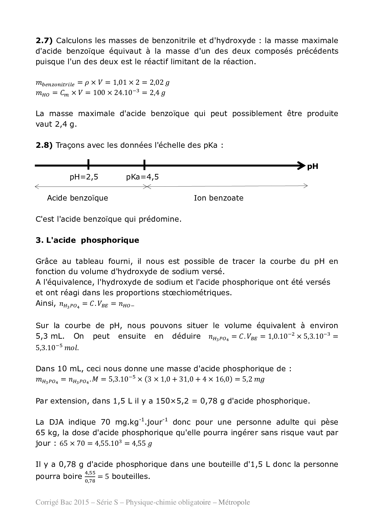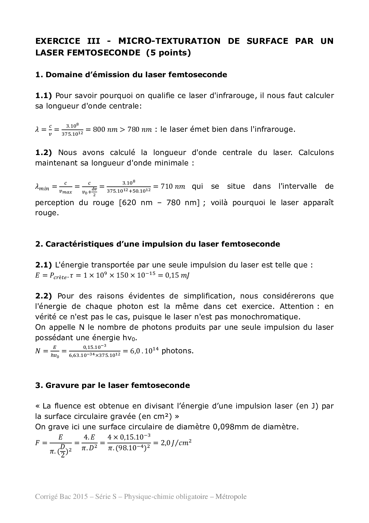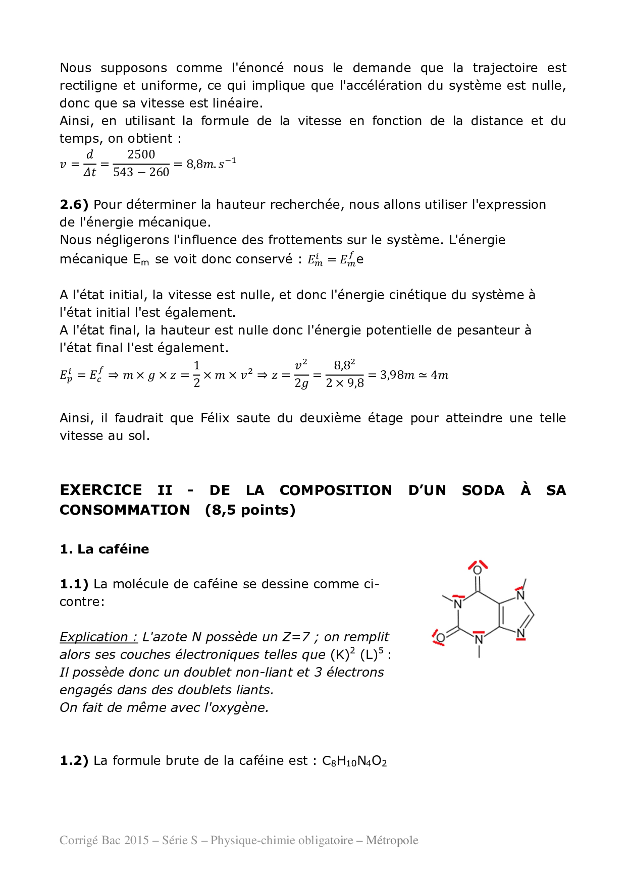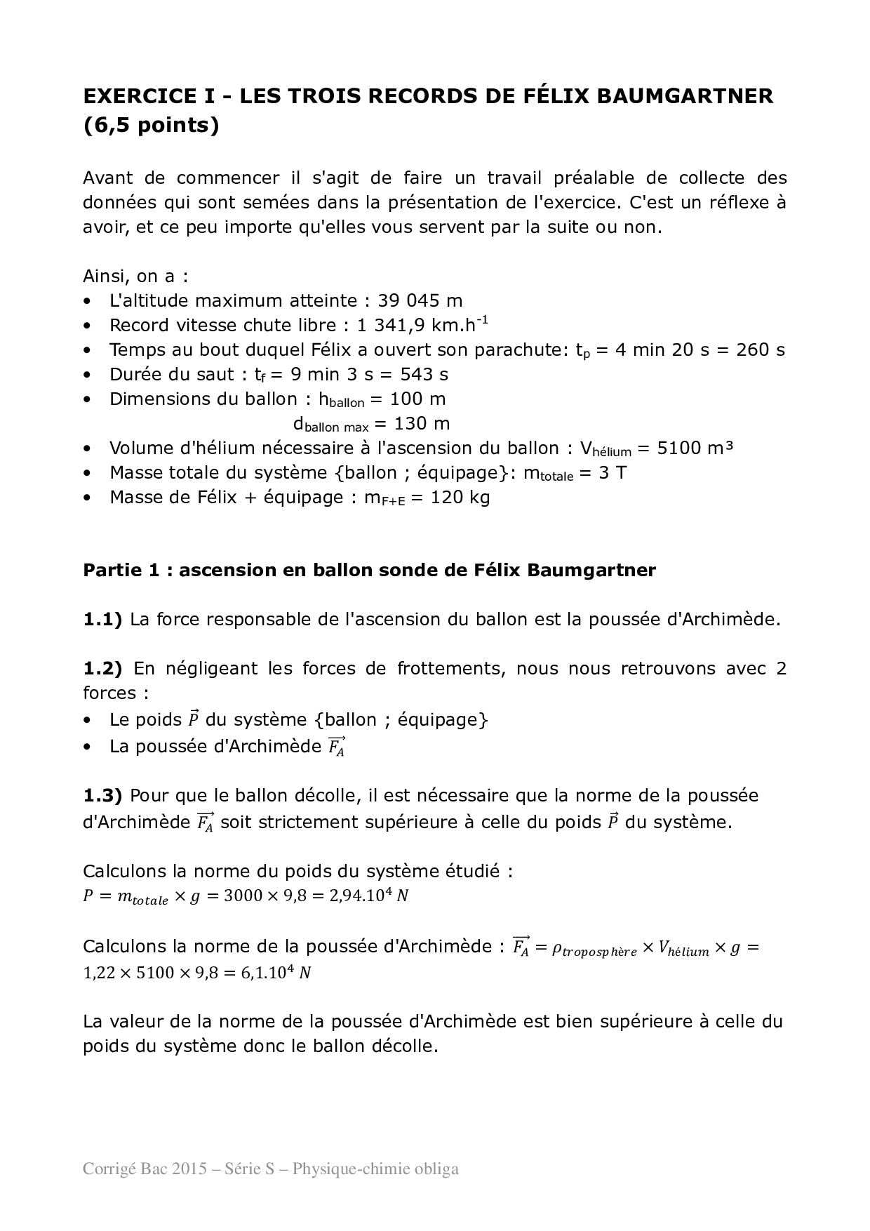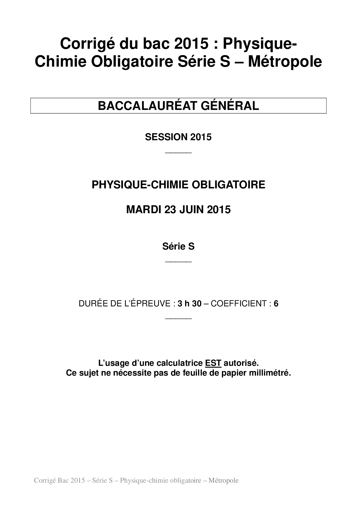 Bac S Physique Chimie Métropole 2015 - Corrigé