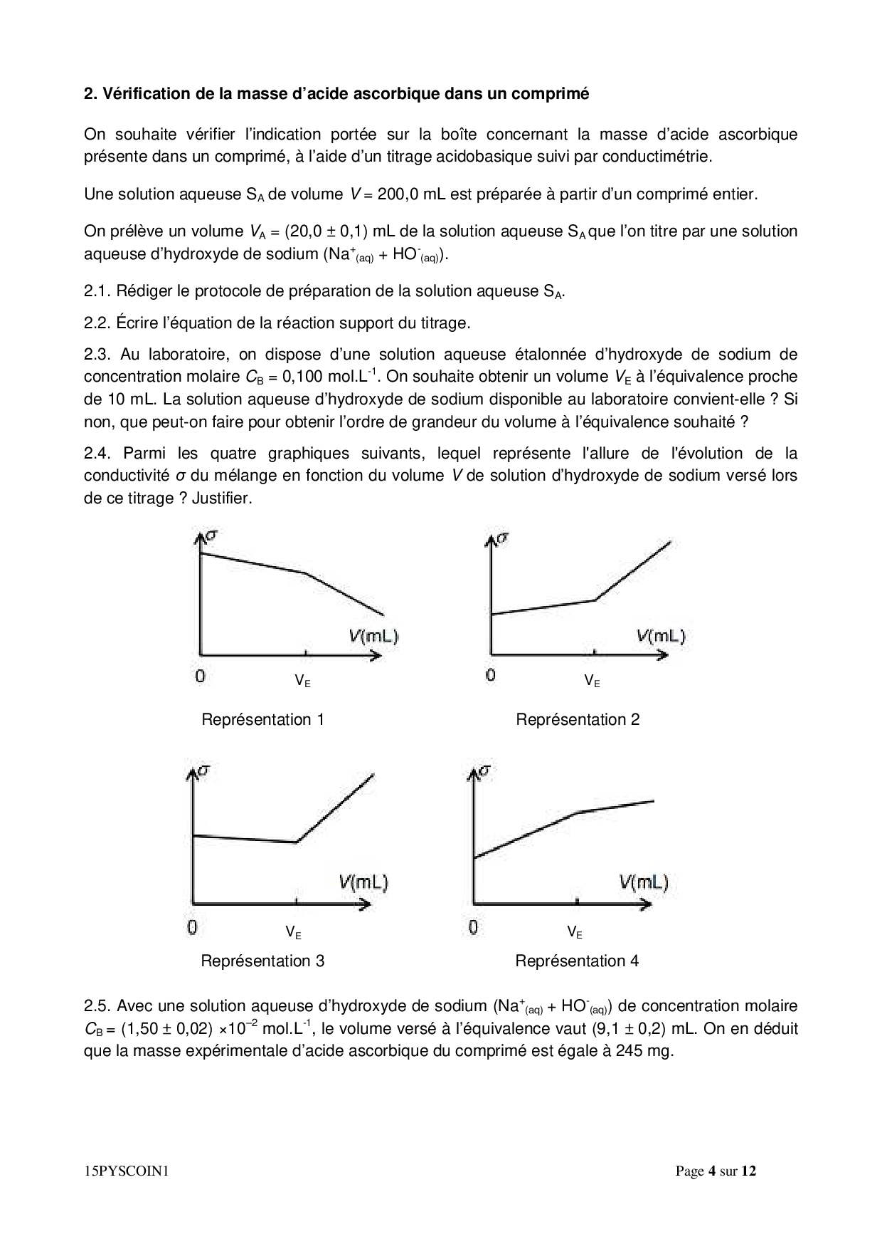 Bac S Physique Chimie Pondichéry 2015 - Sujet