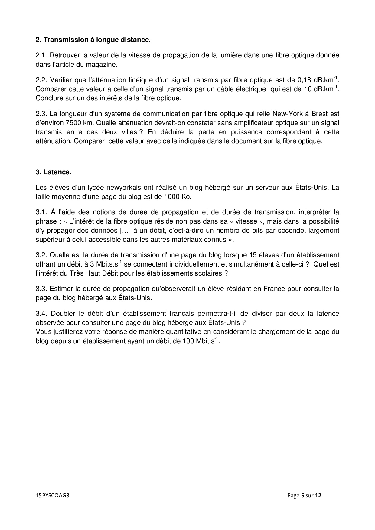 Bac S Physique Chimie Antilles-Guyane 2015 (Session de remplacement) - Sujet