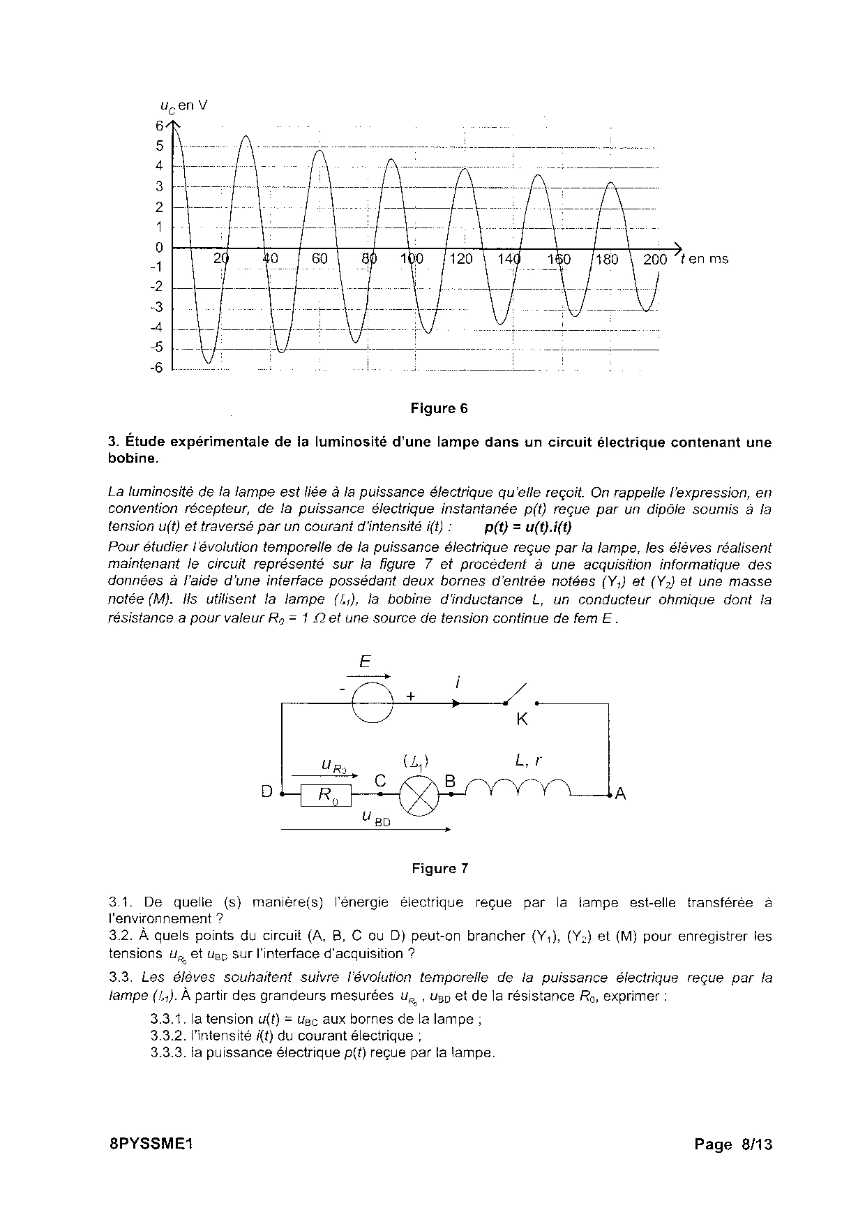 Bac S Physique Chimie (Spécialité) Métropole 2008 - Sujet