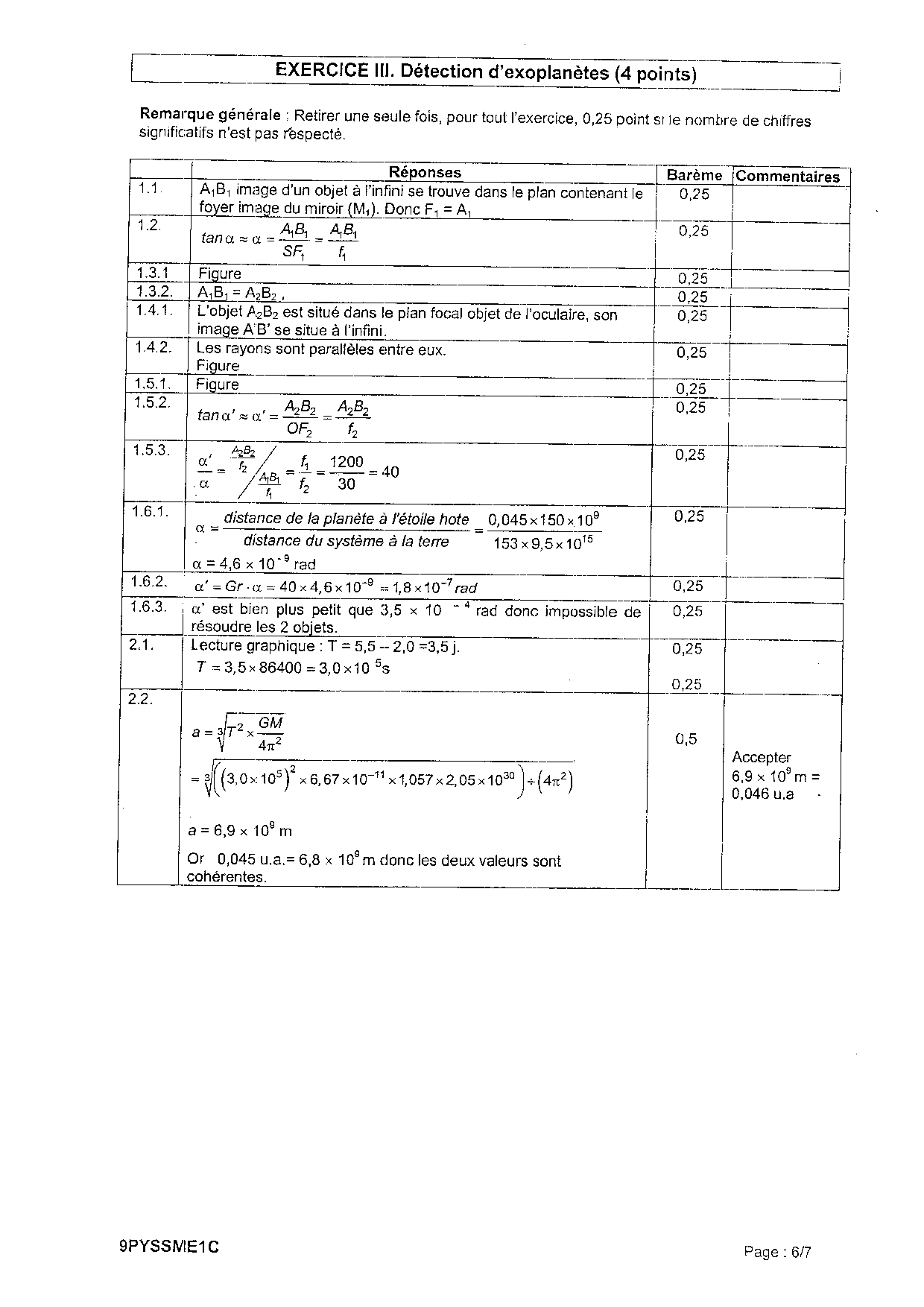 Bac S Physique Chimie (Spécialité) Métropole 2009 - Corrigé