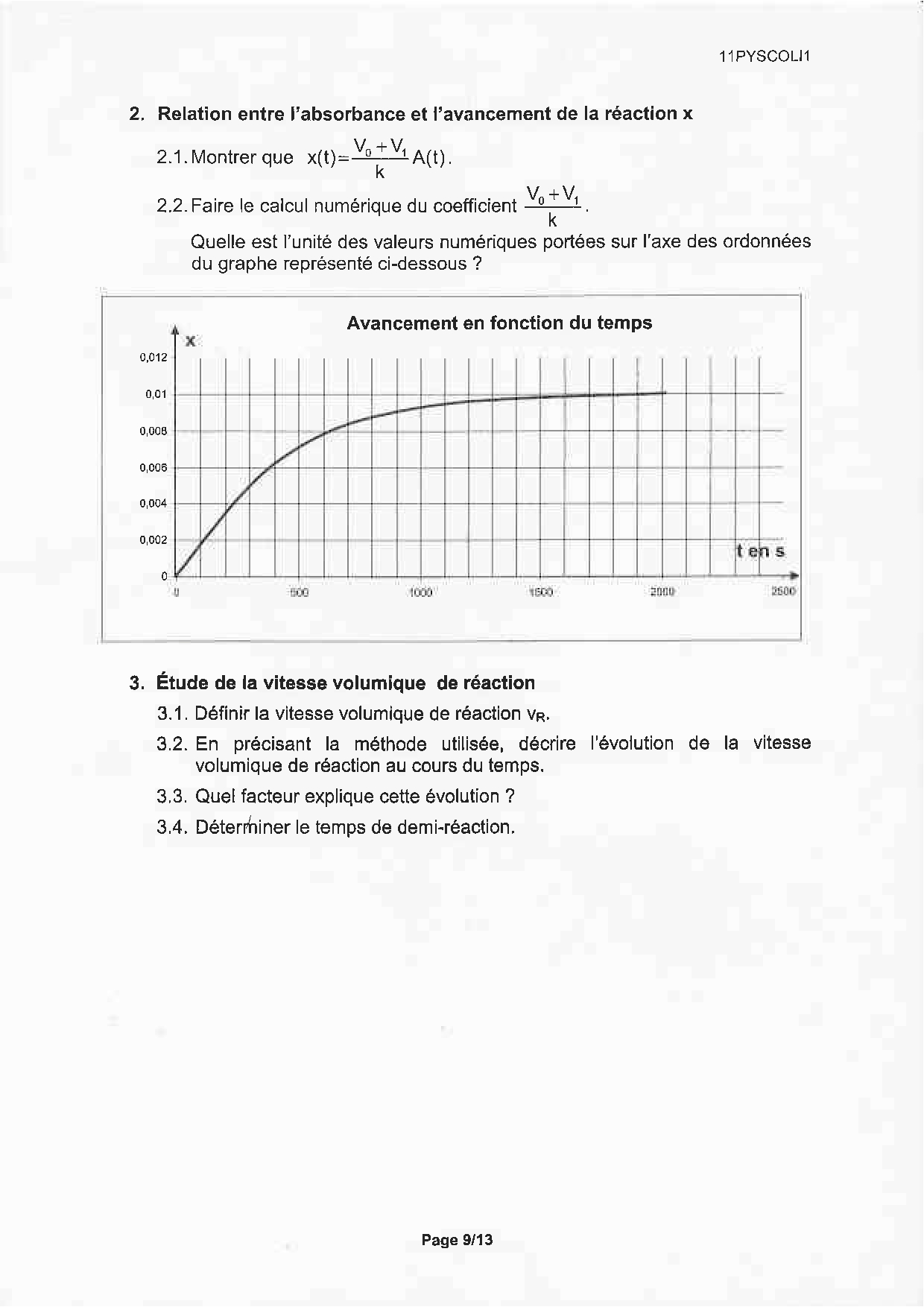 Bac S Physique Chimie (Spécialité) Liban 2011 - Sujet