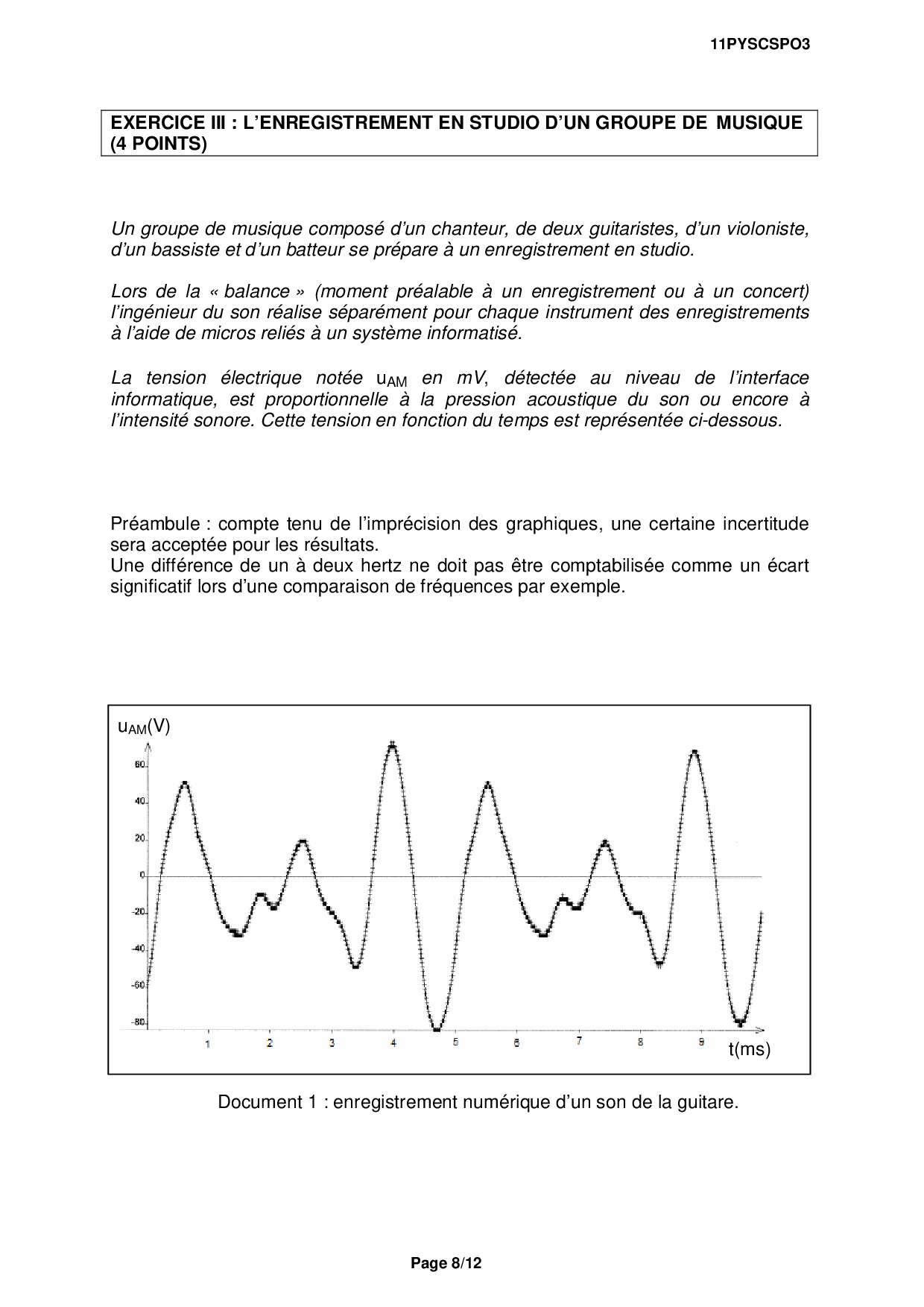 Bac S Physique Chimie (Spécialité) Polynésie (Session de remplacement) 2011 - Sujet