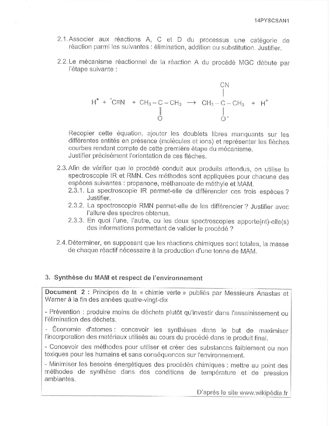 Bac S Physique Chimie (Spécialité) Amérique du Nord 2014 - Sujet